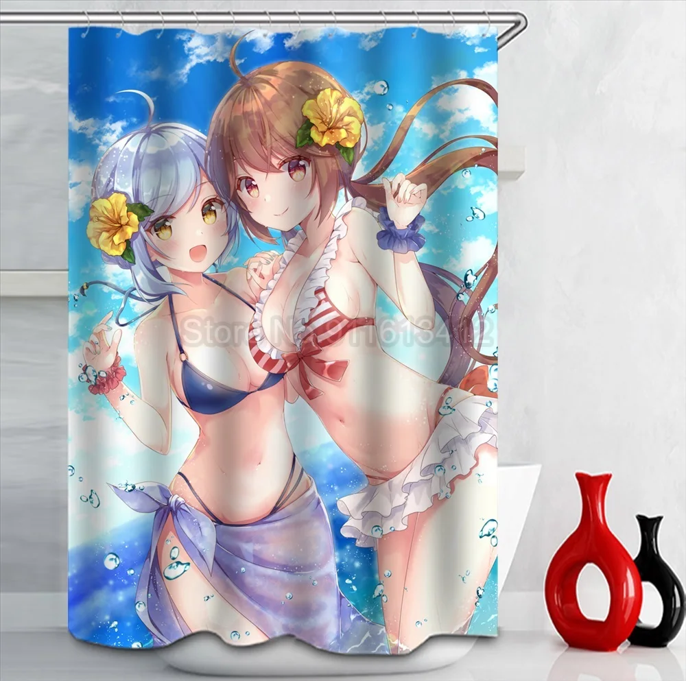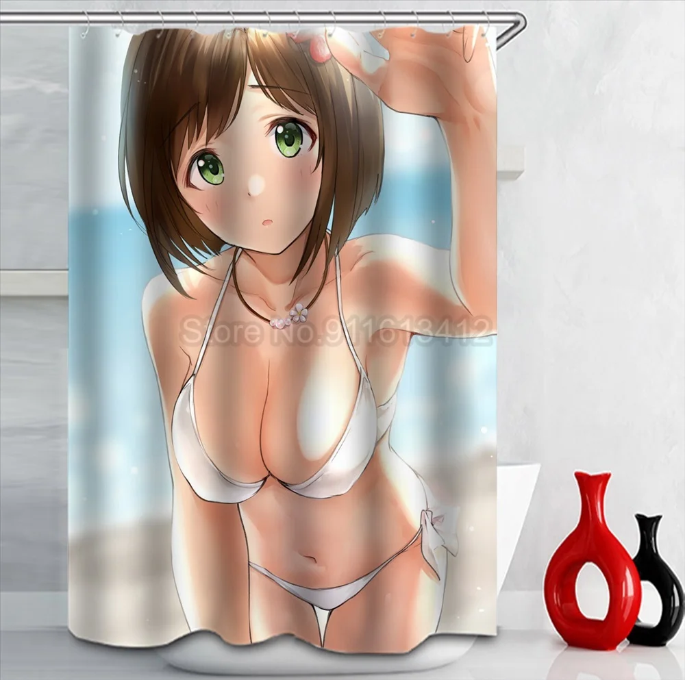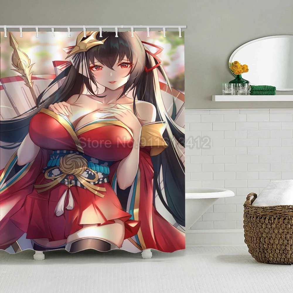 Водонепроницаемая занавеска для душа с принтом в стиле аниме, с большой грудью, с большими задницами, для девочек, с крючком