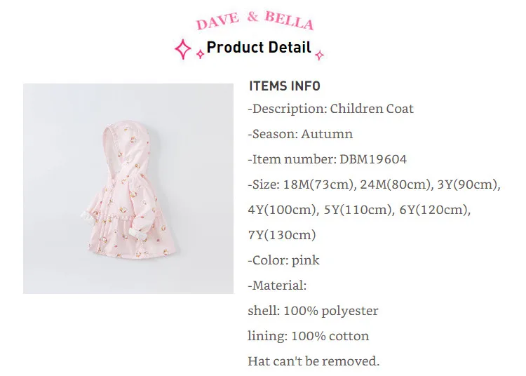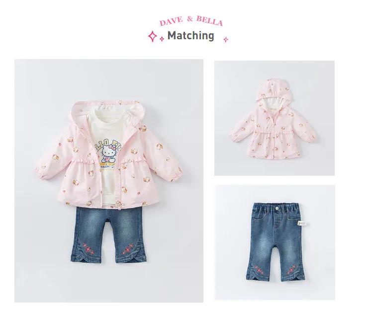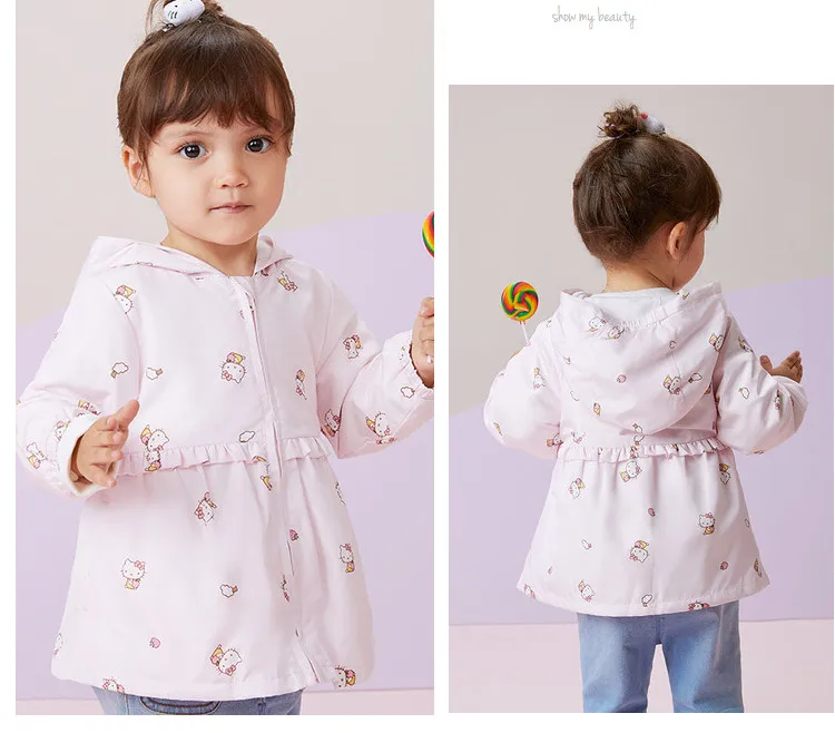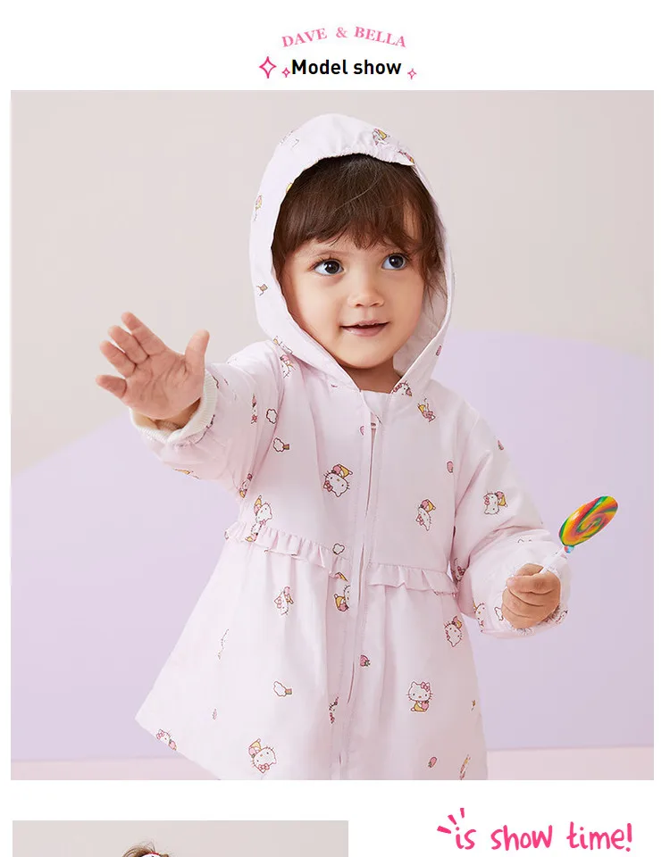 DBM19604, детское осеннее пальто с капюшоном и мультяшным принтом