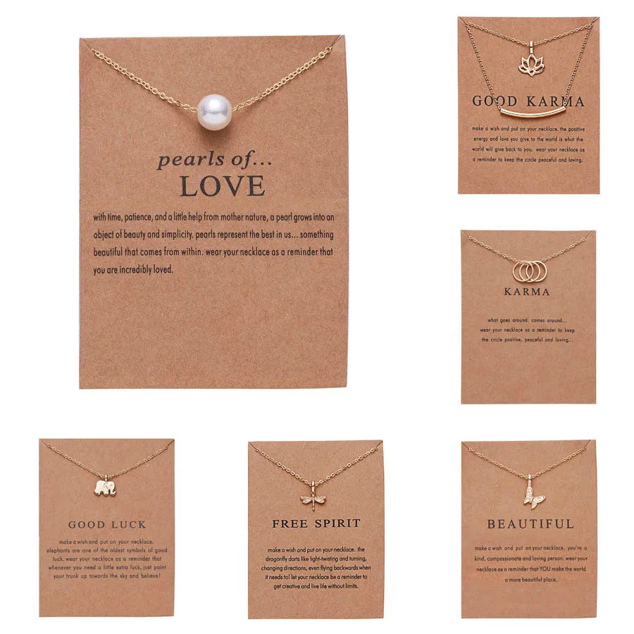 Бабочка Жемчужное ожерелье с подвеской для женщин лотосов и стрекоз; Слон колье цепи поздравительной открыткой для девочек вечерние дружбы, ювелирные изделия в качестве подарка