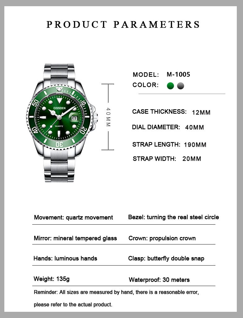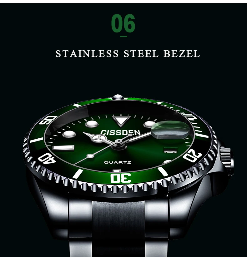 Часы наручные CISSDEN Мужские кварцевые, брендовые Роскошные водоне...