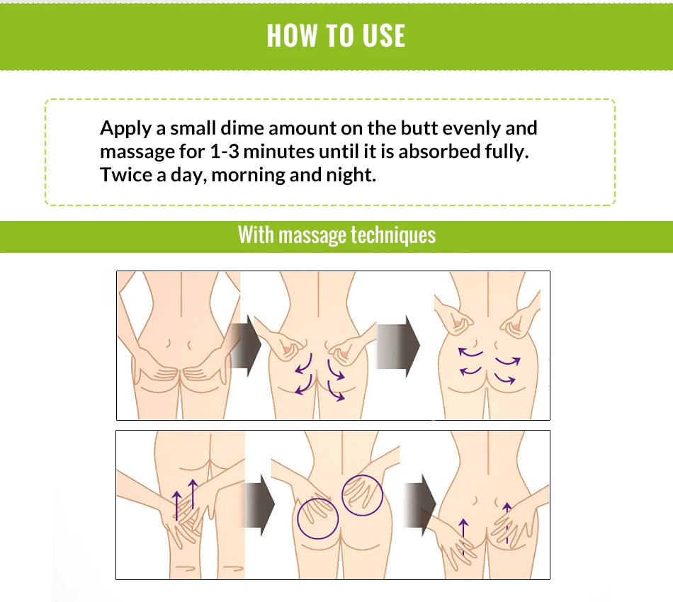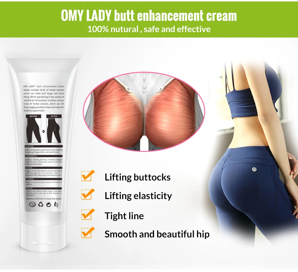 OMY LADY®-Крем для увеличения попы принимает несколько видов растительных экстрактов, которые могут сделать ягодиц больше и больше подъема. Который специализируется на контроле целлюлита для ягодиц. Он использует различные виды растительных экстрактов, которые могут поднять эти провисающие проблемные зоны и сделать ягодицы более полными!
