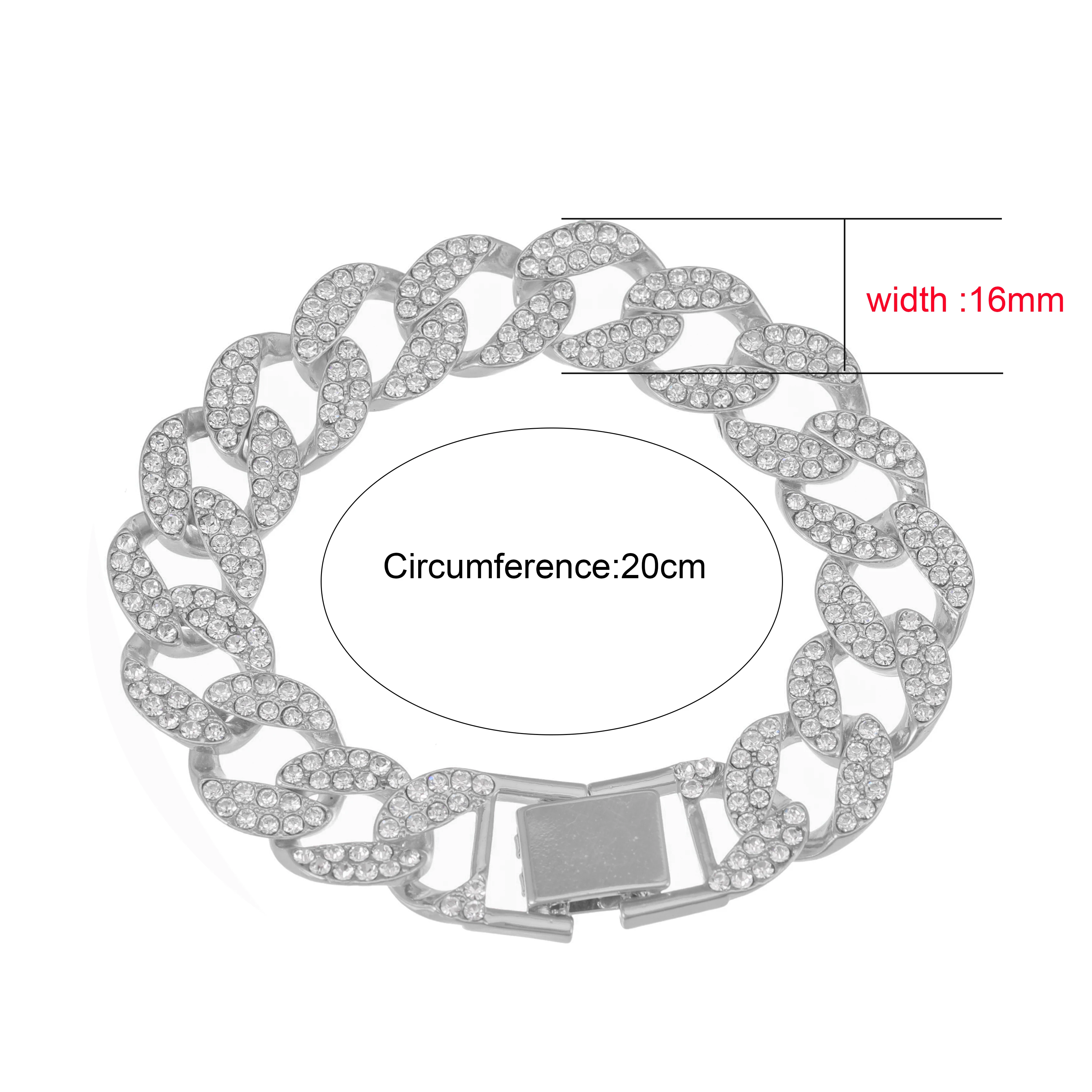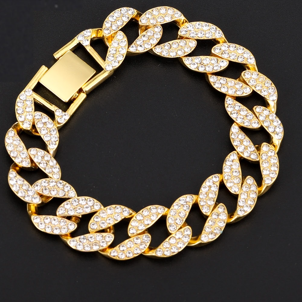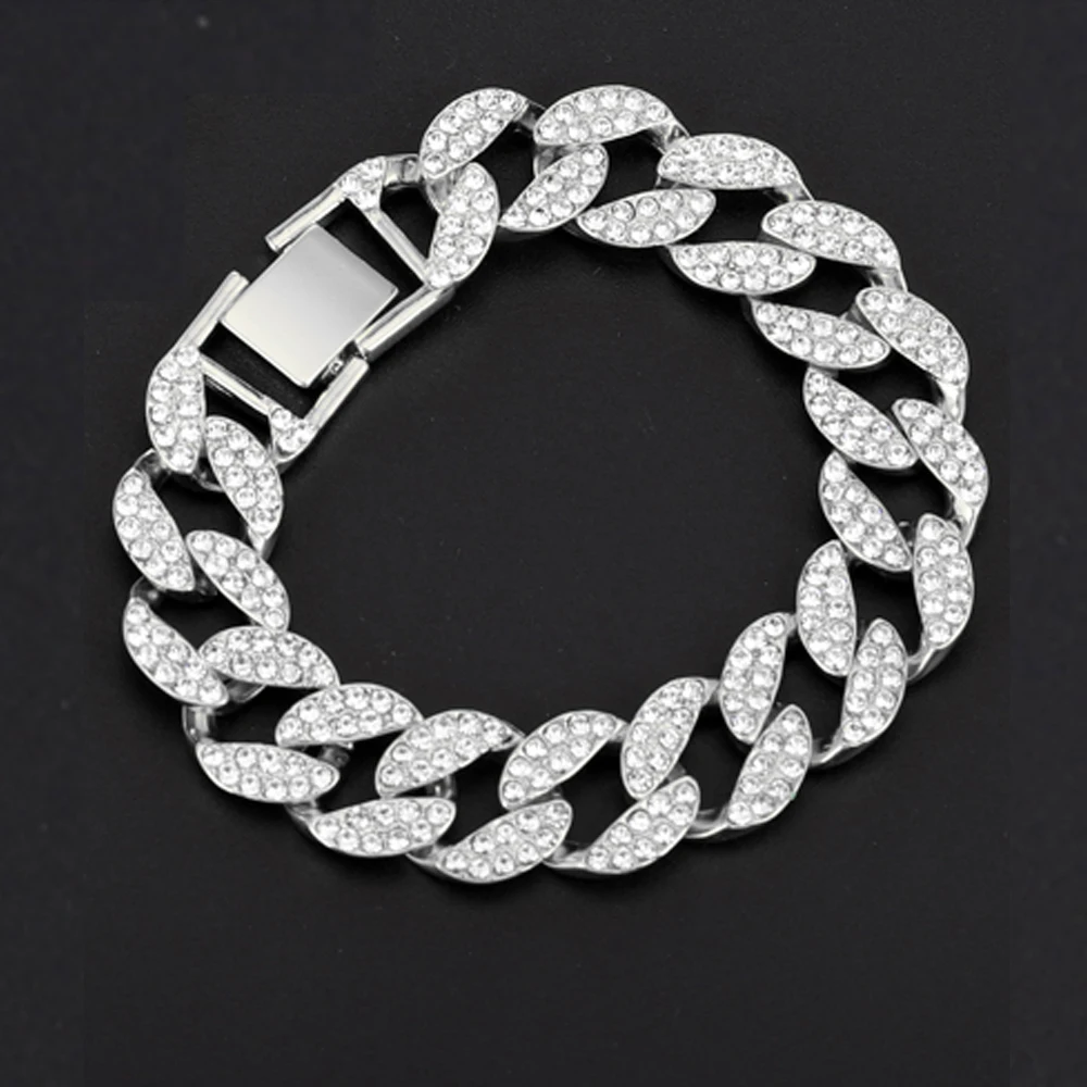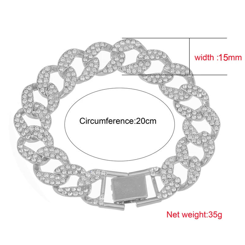 Браслет-цепочка мужскойженский, 15 мм, золотистыйсеребристый цвет, стразы