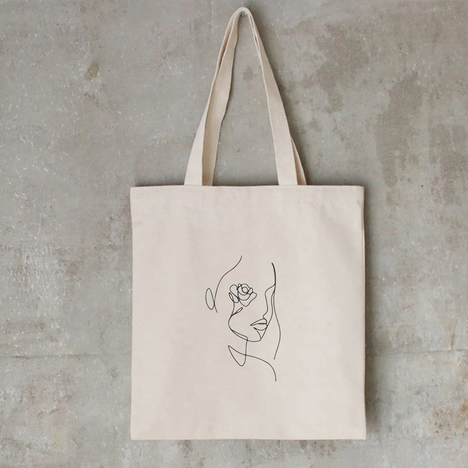 Холщовая Сумка-тоут с абстрактным изображением лица, женская сумочк...