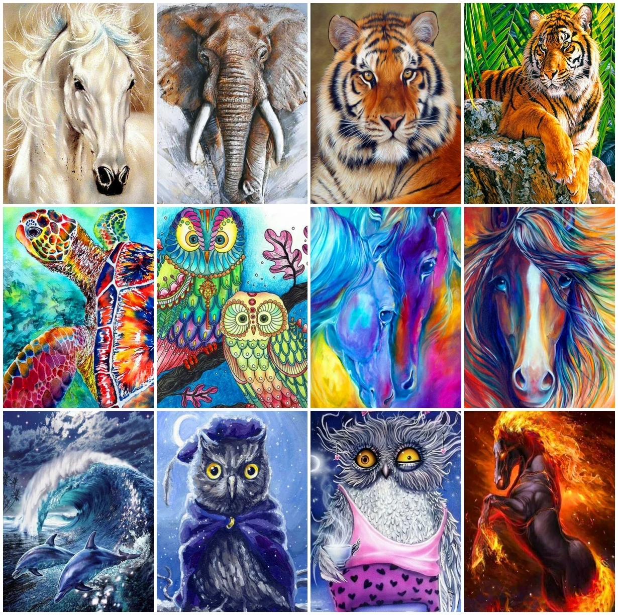 AZQSD Алмазная вышивка, лошади, сова, тигр, волк, Алмазная мозаика для рукоделия, живопись, вышивка крестом, стразы, украшение для дома