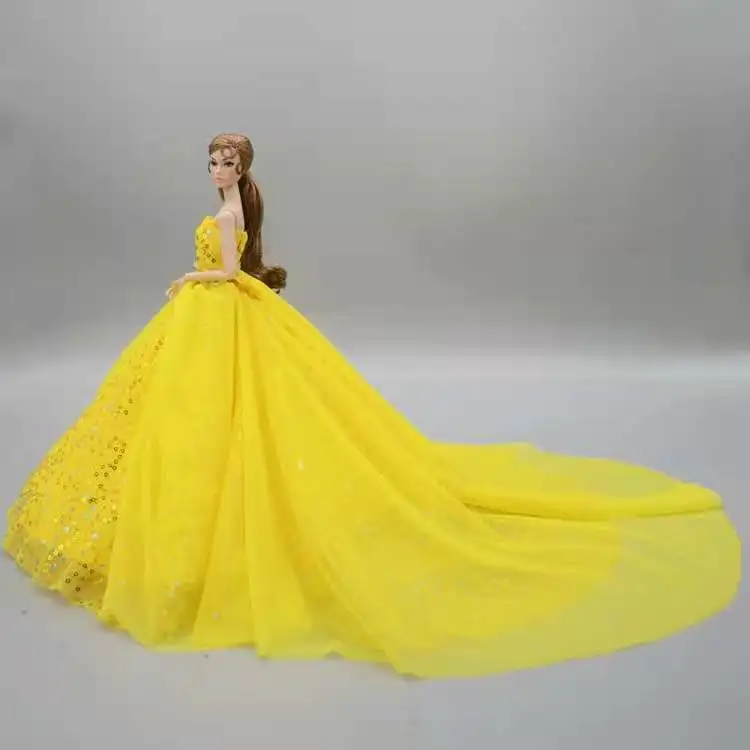 16 BJD одежда, модное желтое платье принцессы с блестками, наряды для свадебной вечеринки, Одежда для кукол Барби, аксессуары для кукол 11,5 дюйма