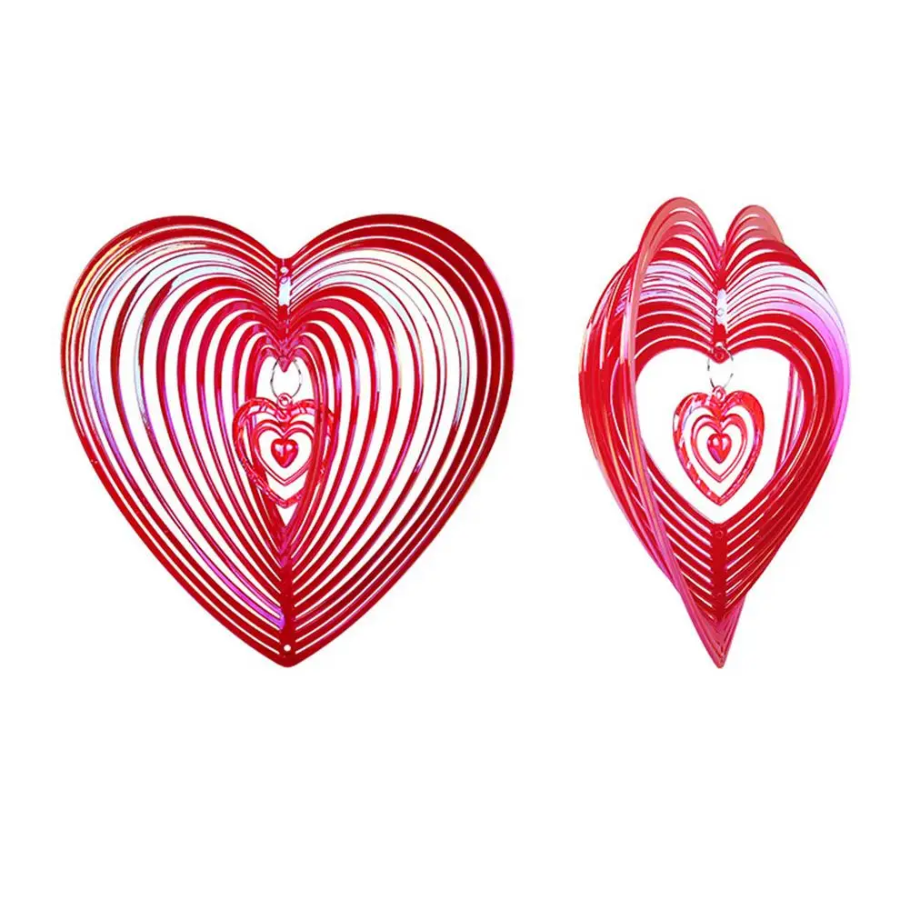 Музыкальная подвеска-Спиннер, кинетические подвесные украшения в форме сердца, садовая 3D скульптура, красные ветряные музыкальные колокольчики для улицы, гостиной