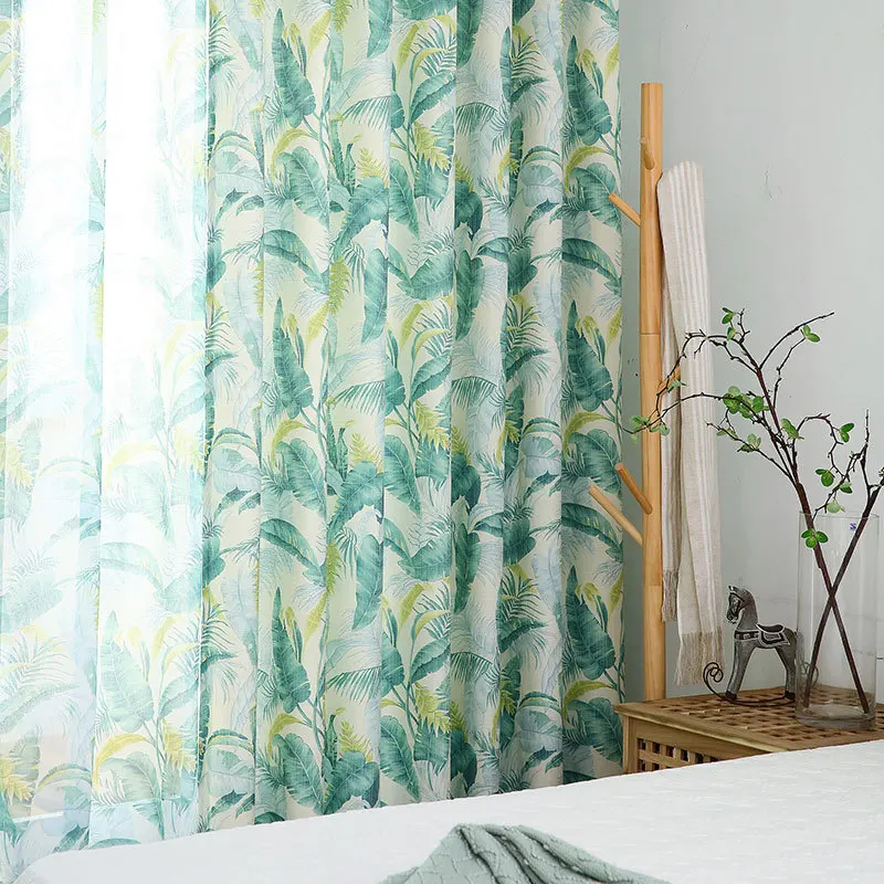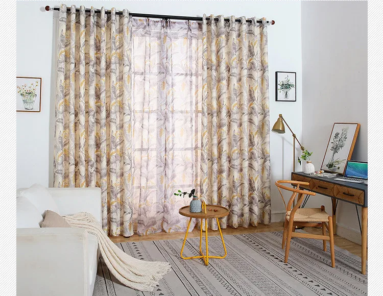 Прозрачные шторы с тропическим принтом листьев для гостиной, спальн...