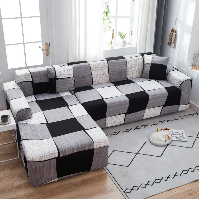 Чехол для дивана с клетчатым принтом, L-образный эластичный съемный чехол для мебели для гостиной, стрейчевая искусственная кожа с достаточной пеной