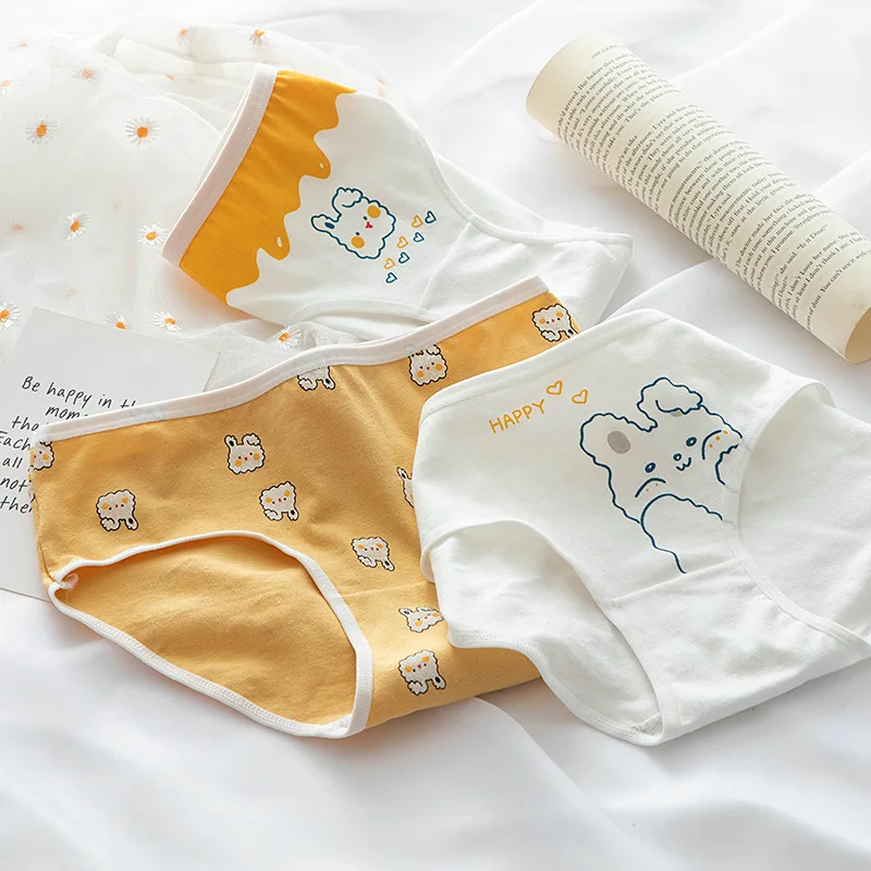 Нижнее белье женское хлопковое желтое, со средней посадкой, каваи б...