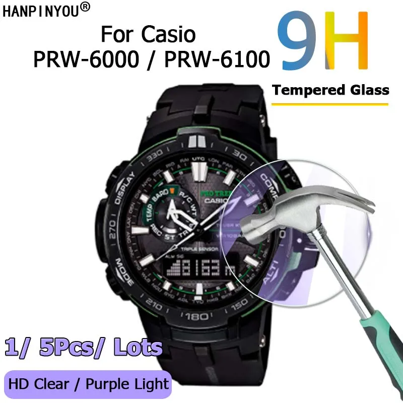 1 / 5 шт для объектива с оптическими зумом Casio PRW-6000 PRW-6100 Смарт-часыСиний фиолетовый светильникТвердость 9H 2.5D ультра-тонкая закаленная Защитная стеклянная пленка для экрана