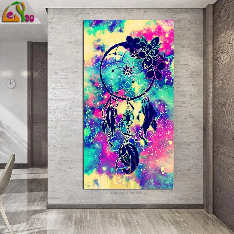 5D DIY Алмазная картина Ловец снов цветы перья 5D полная круглая/квадратная Алмазная вышивка крестом, мозаичный Декор подарок