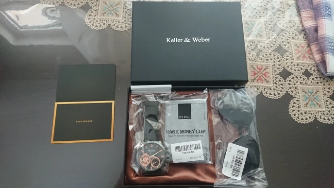 Коробка этого продукта очень хорошего качества, очки, которые я ношу в настоящее время, часы, которые я установил вовремя, и маленький кошелек безупречен