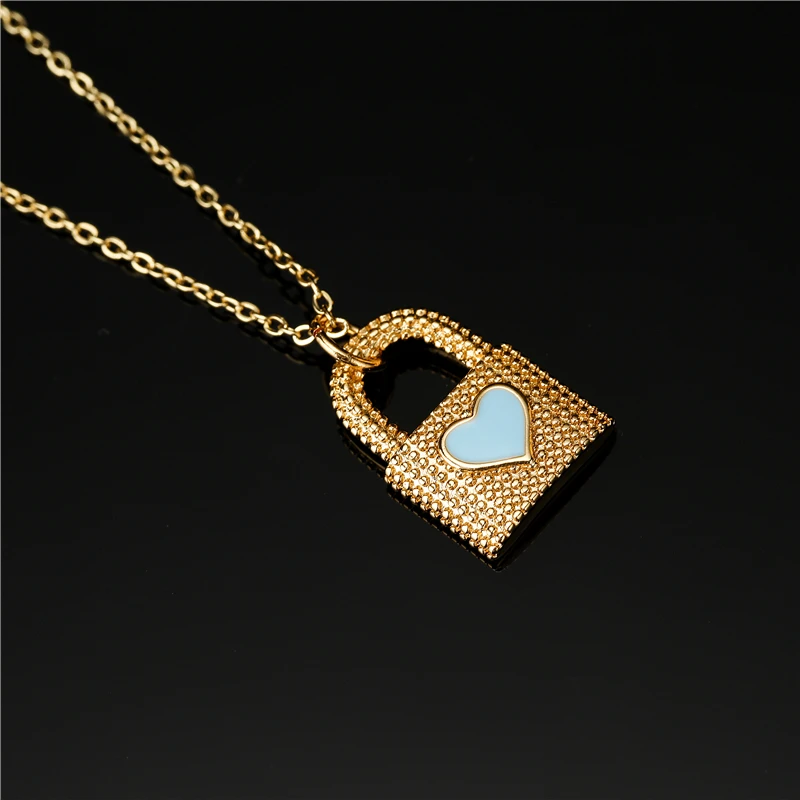 Модные золотые Цвет медный замок ожерелье, подвеска, колье, для женщин, для девочек красныйсинийчерный 3 Цвет s сердце в виде капель масла ювелирные изделия подарок на день рождения