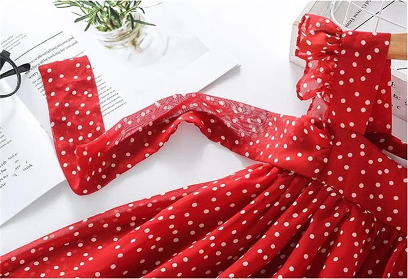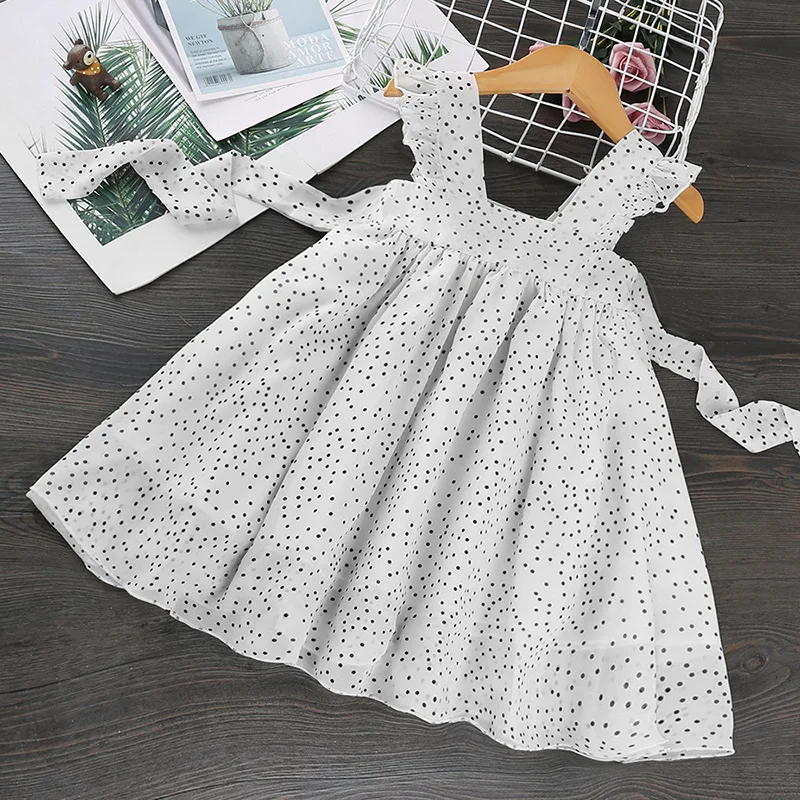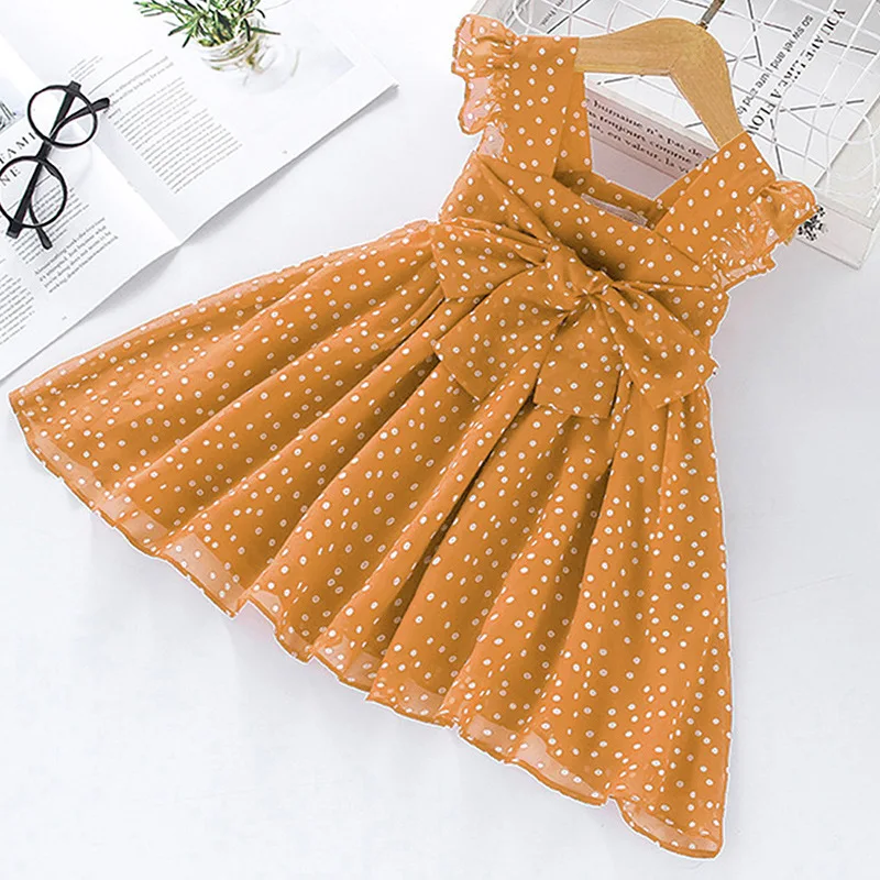Летнее шифоновое платье для девочек, без рукавов, в горошек