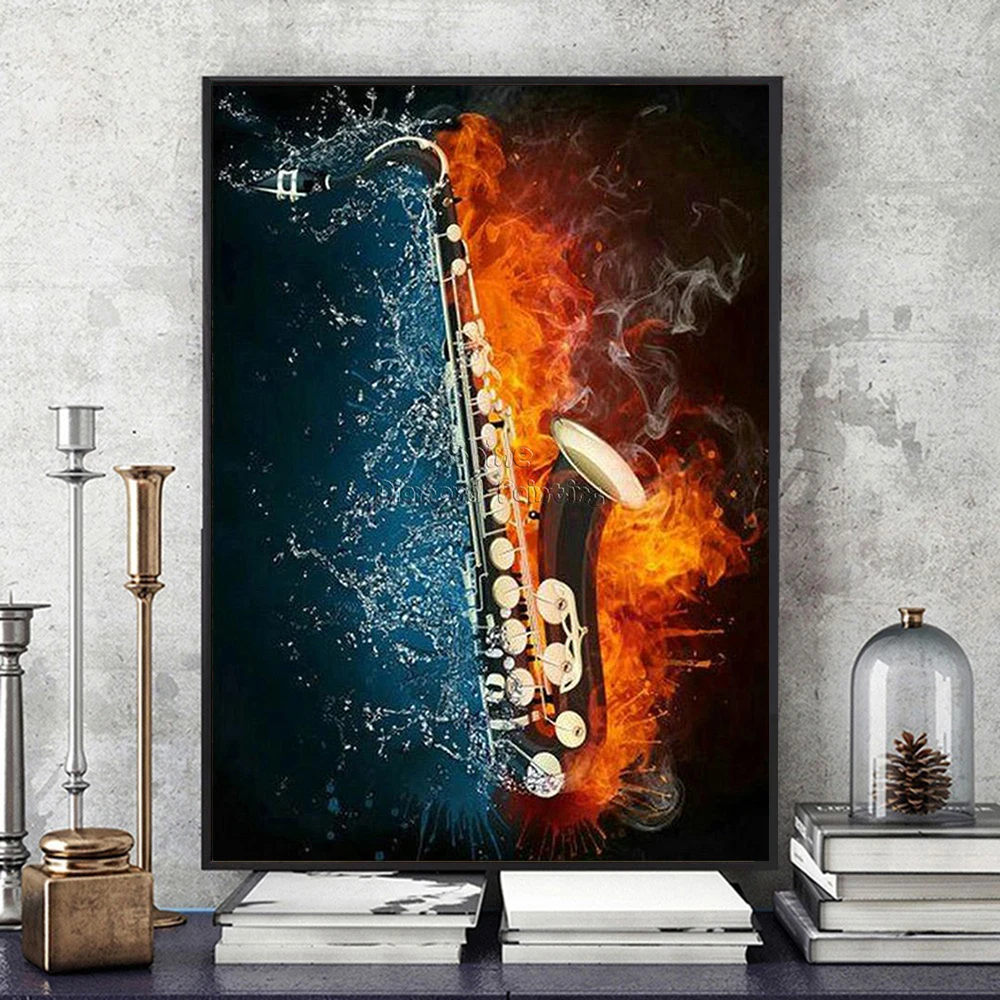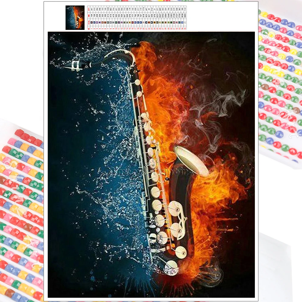 Набор для алмазной живописи 5D "сделай сам", музыкальный инструмент, саксофон, ледяной огонь, мозаика, вышивка, квадратная круглая, рождественский подарок, домашний декор