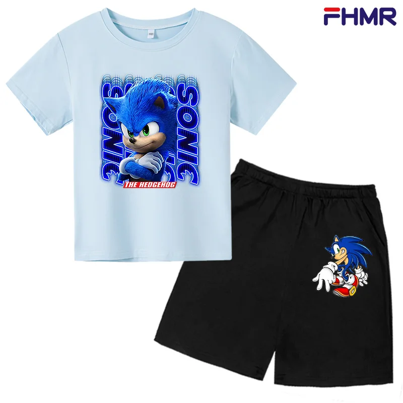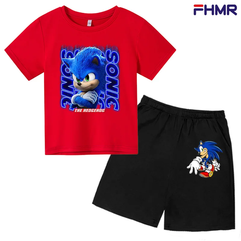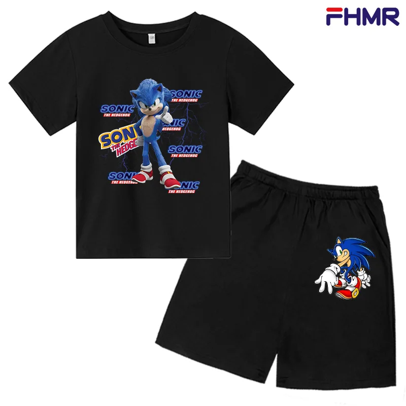 2021 Одежда для мальчиков детское Летнее нарядное праздничное вечернее Sonic зубная щётка футболка с рукавом и изображением персонажей из мультфильмов для Верхняя Одежда для мальчиков Детский спортивный костюм, детская одежда, комплект для детей 4, 5, 6, 7, 8, От 9 до 14 лет