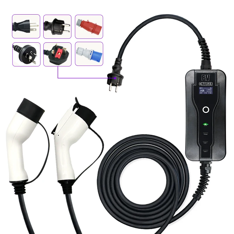 Портативное бытовое зарядное устройство для электромобилей, тип 1 16 А, регулируемое SAE J1772, высококачественное зарядное устройство с ручкой и разъемом для электромобиля
