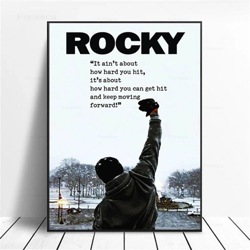 Черно-белая Рокки Бальбоа, боксерская Картина на холсте, мотивационные постеры и принты, Настенная картина для гостиной, украшение для дома