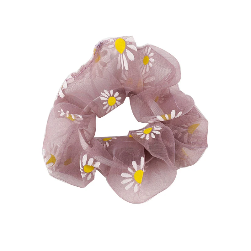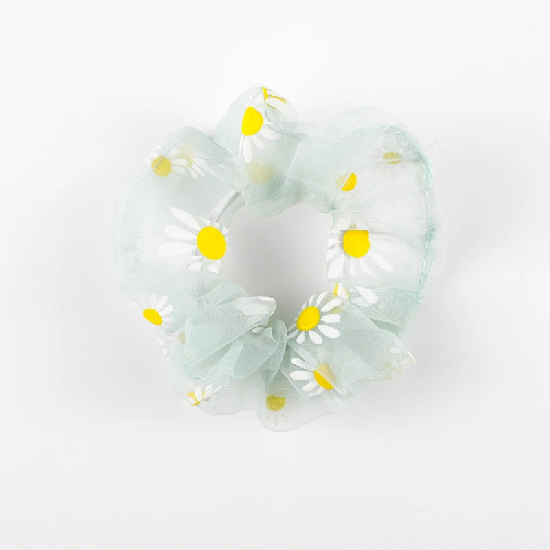 Резинка для волос женская из мягкой органзы, корейский стиль, маленький принт в виде маргариток, эластичная пряжа, аксессуар на голову
