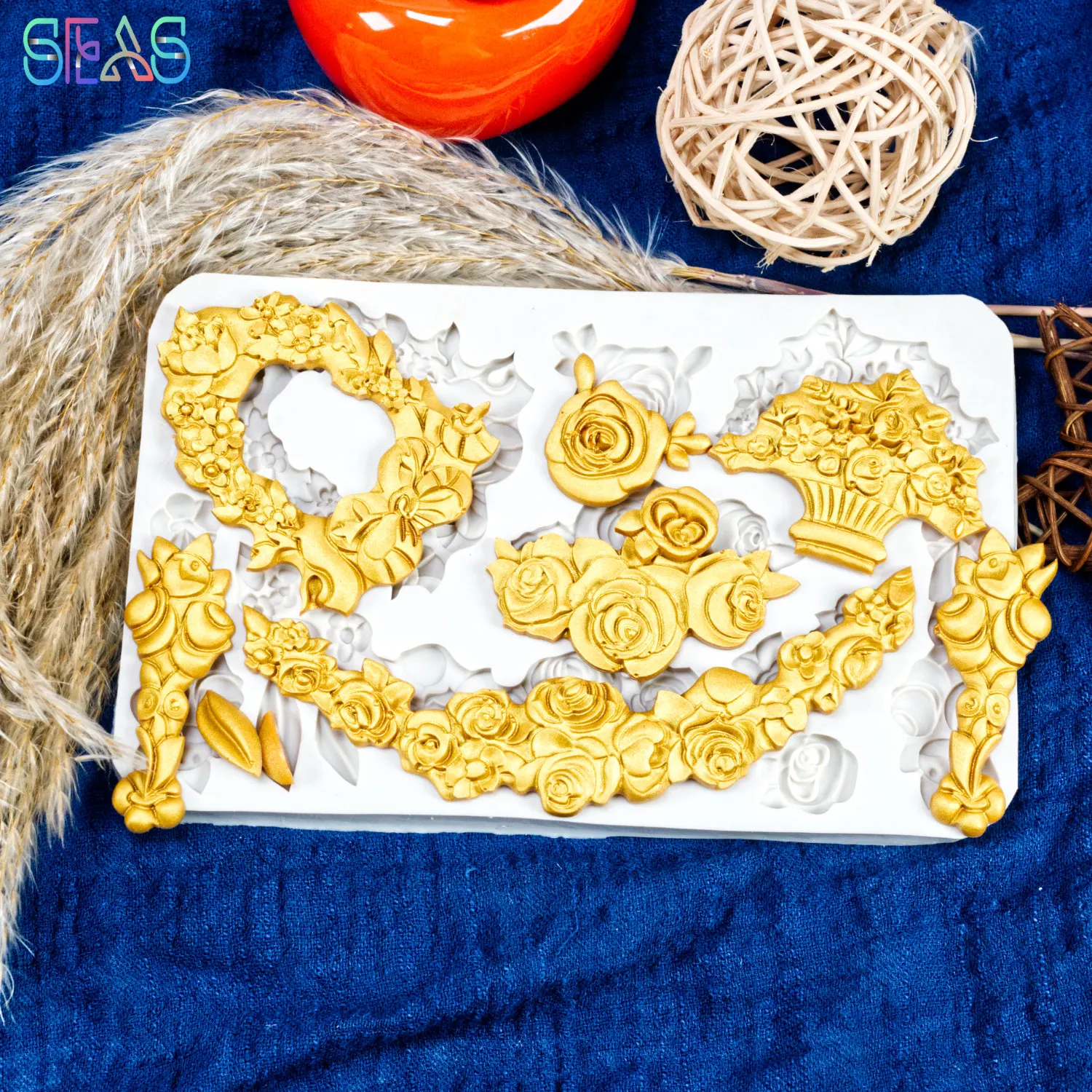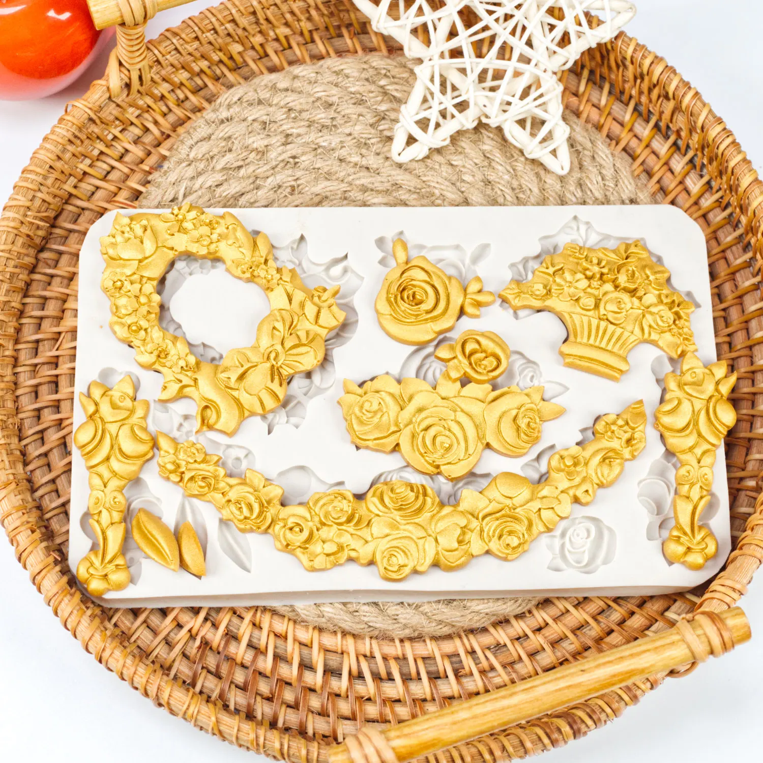 Силиконовые формы в форме цветов для оформления свадебного торта, инструменты для выпечки, кружевные формы для шоколада, желе