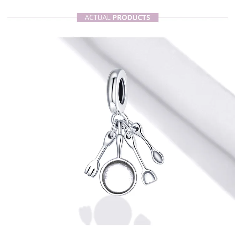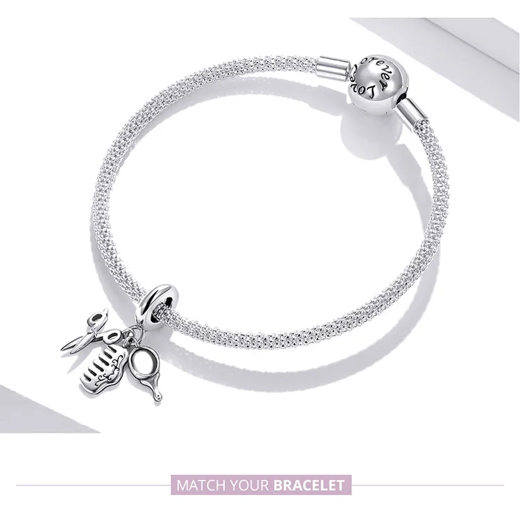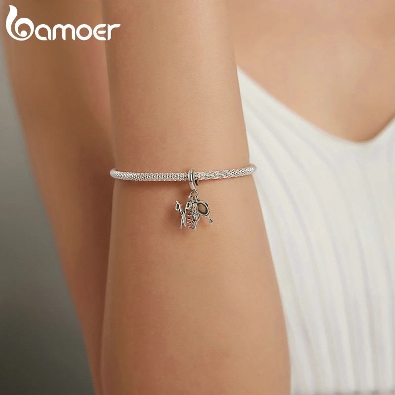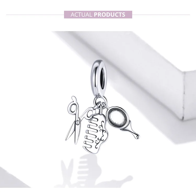 Bamoer 925 пробы серебряные ножницы гребень зеркало красота инструменты Кухонная утварь набор вилка Пан Шарм Подвеска для браслета SCC1887