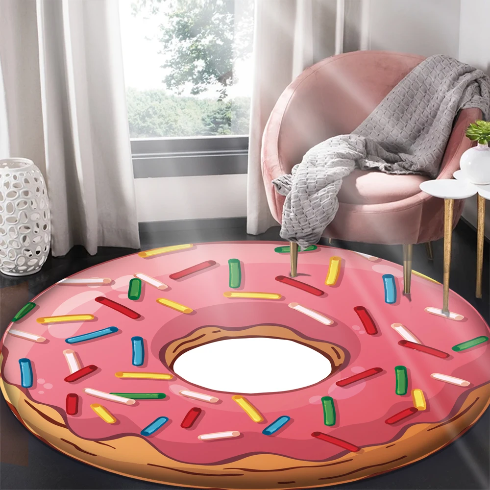 Круглый ковер с изображением фруктов и еды, домашний ковер, большой ковер для спальни, ковер для гостиной, детской комнаты, ковер с аниме, коврик для двери