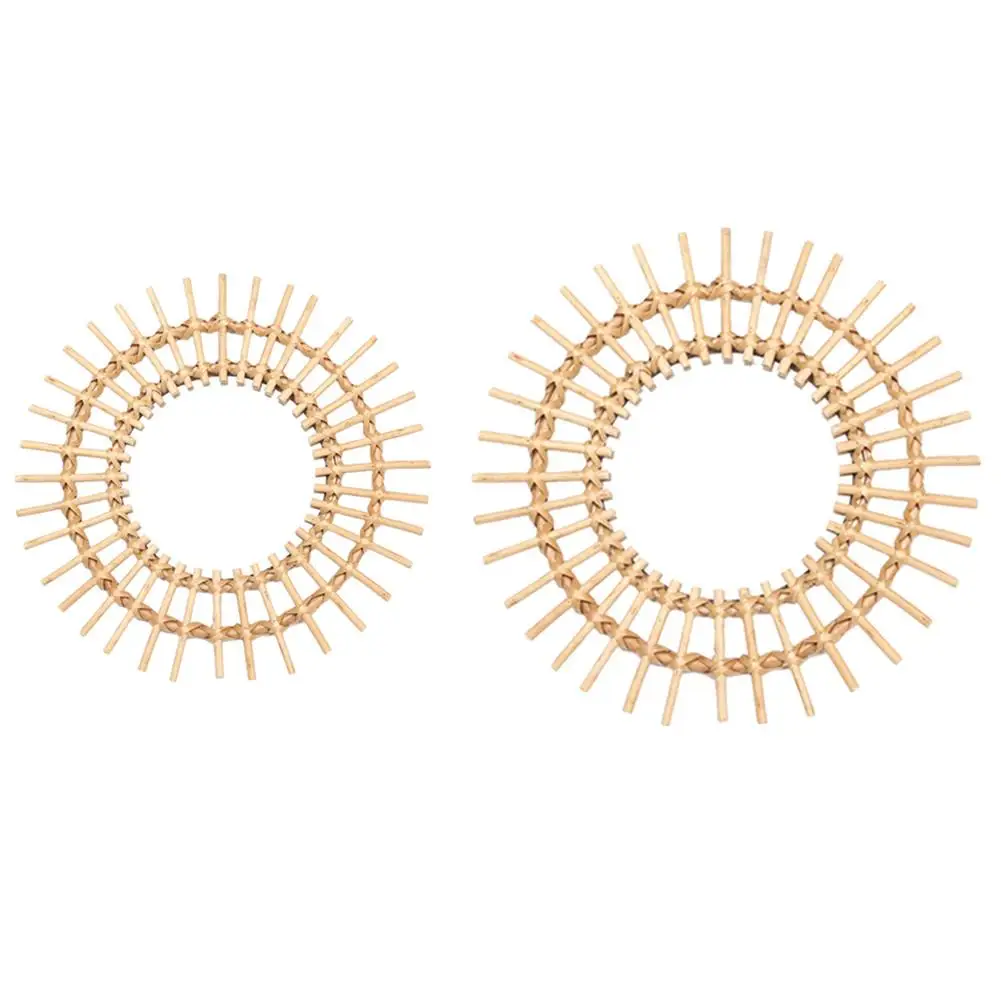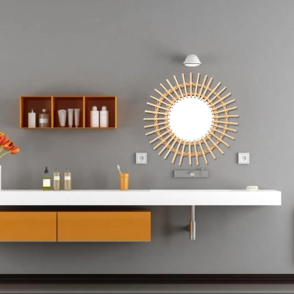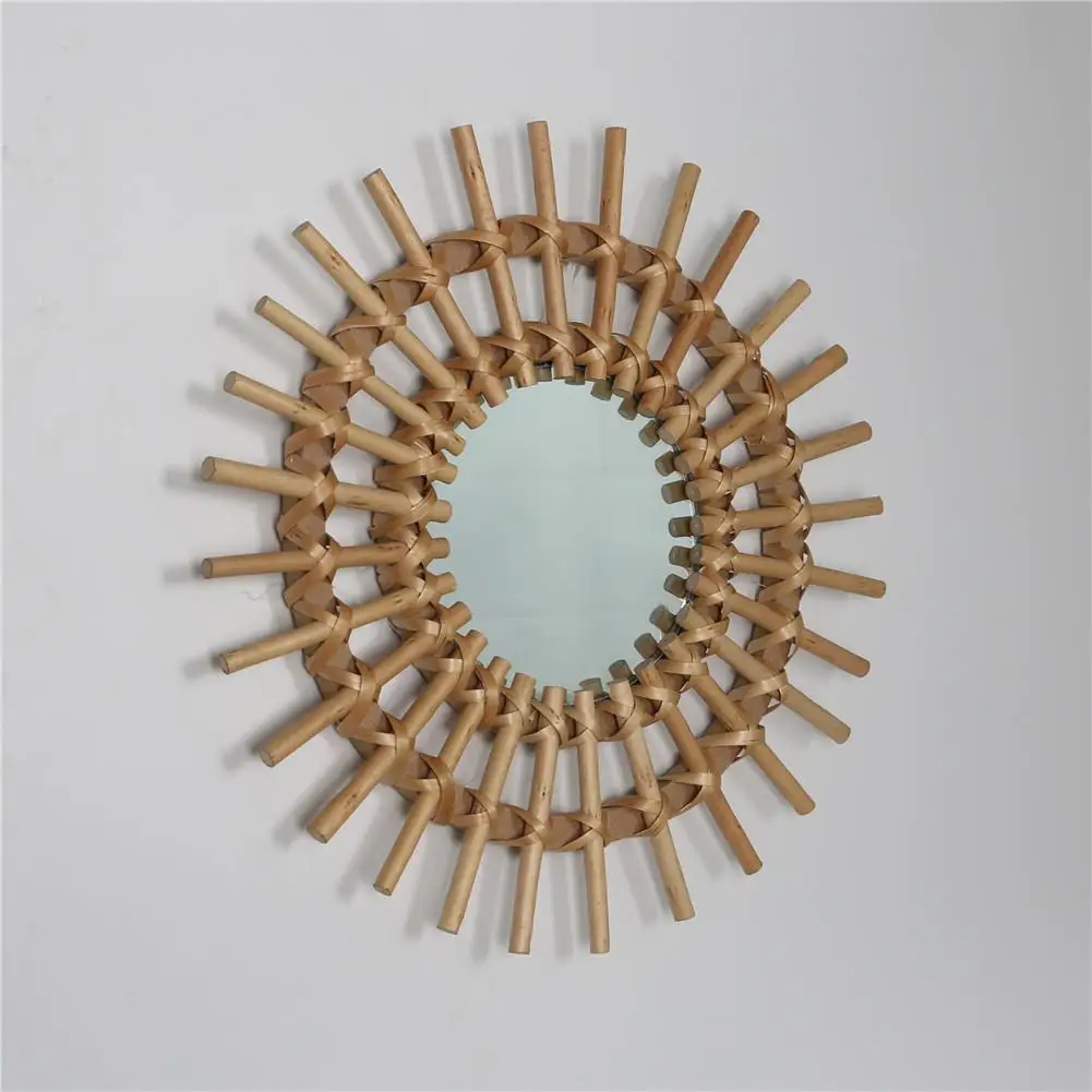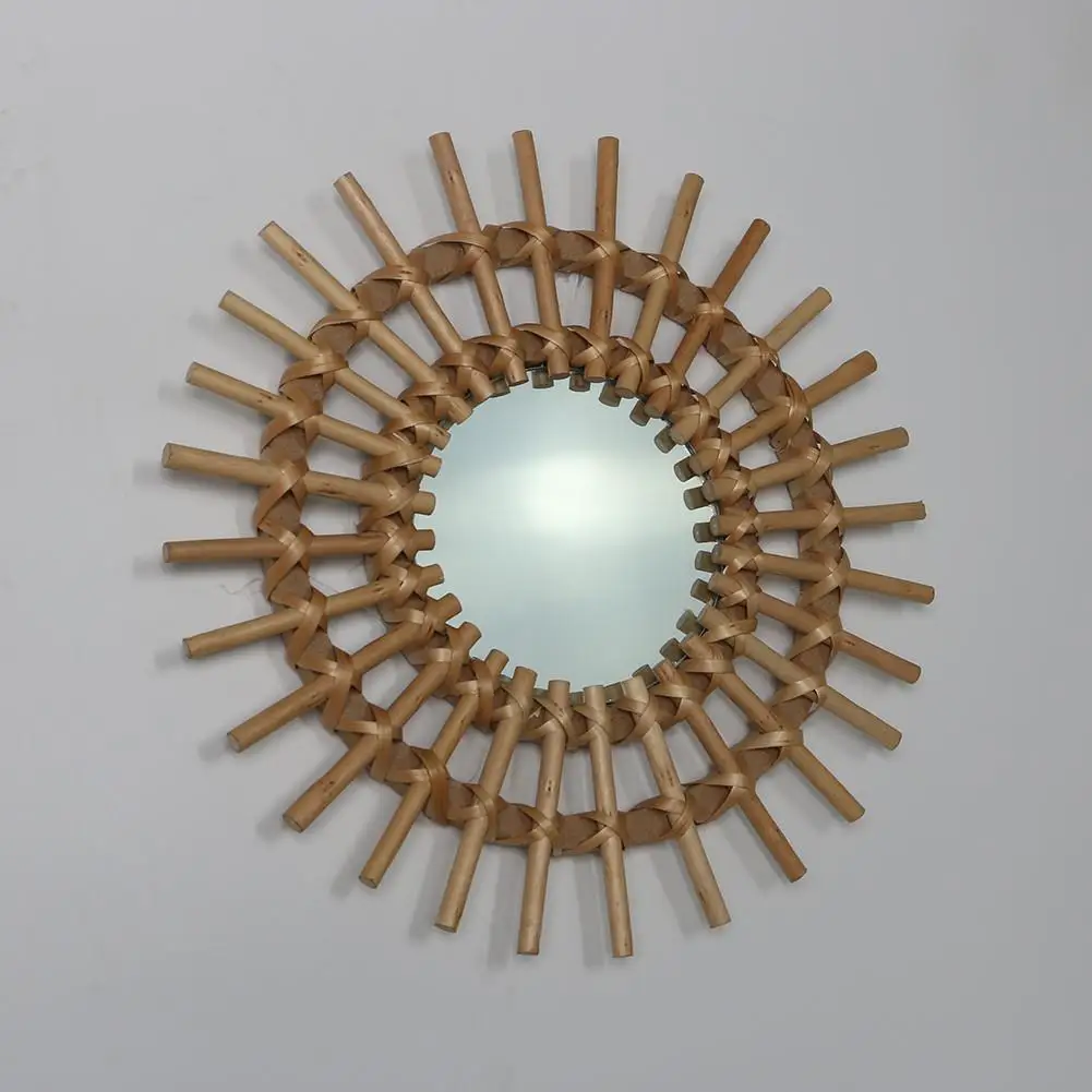 Плетеное ротанговое инновационное художественное украшение, круглое зеркало для макияжа, туалетное настенное висячее зеркало для ванной комнаты, зеркальные поделки для дома
