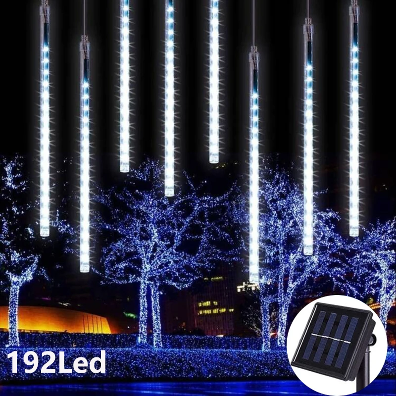 Уличный садовый светильник на солнечной батарее, 30 см, празднисветильник Гирлянда-метеоритный дождь с 192 светодиодный для рождественского патио, бара, украшение для рождественской елки