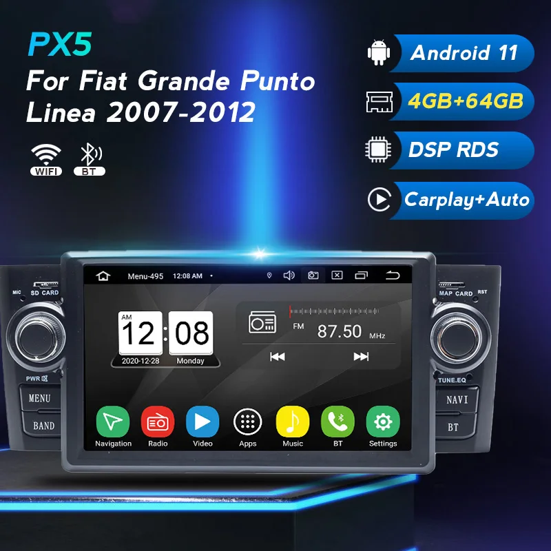 Автомобильный Dvd-плеер на платформе Android 11 DSP для Fiat Grande Punto Linea 2007-2012, мультимедиа, автомобильное радио, GPS-навигатор, новый видеовыход Carplay 4G