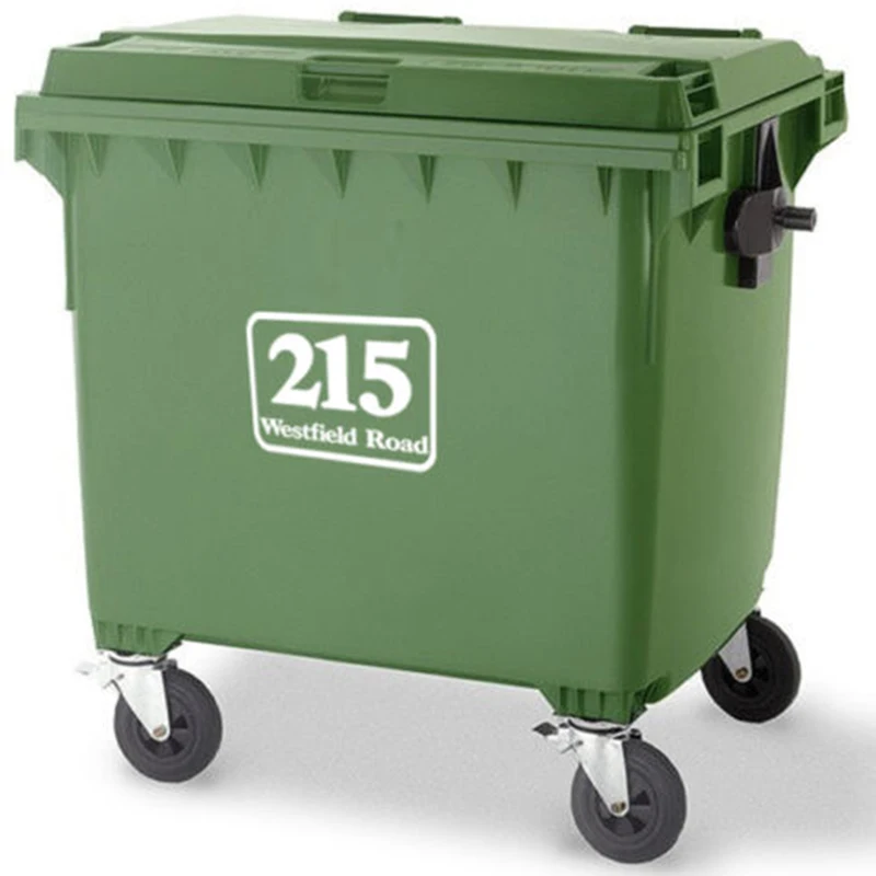 Виниловая наклейка для мусорного ведра с именем на улице