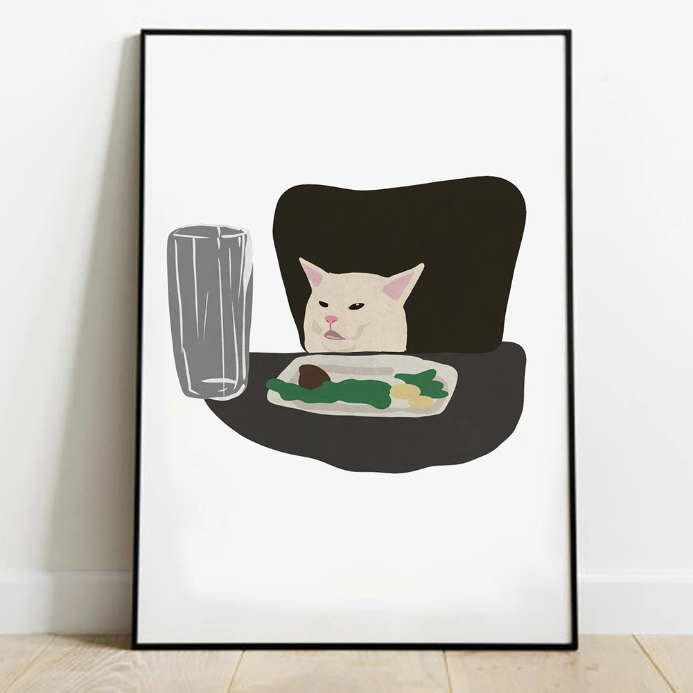 Забавный художественный плакат на холсте с изображением девушки и кота мема, Настенная картина для гостиной, украшение для дома, декор для подростков