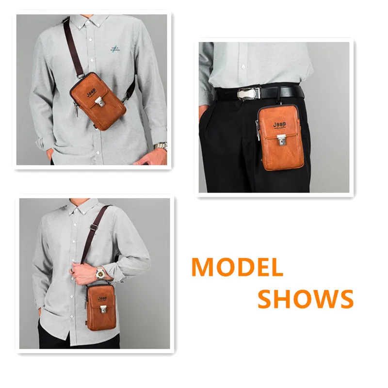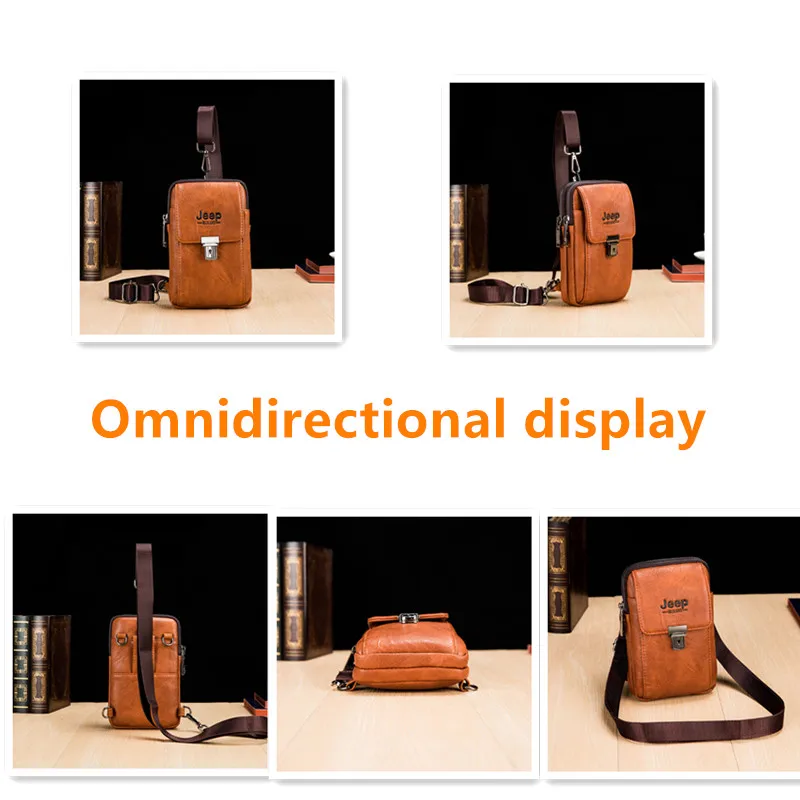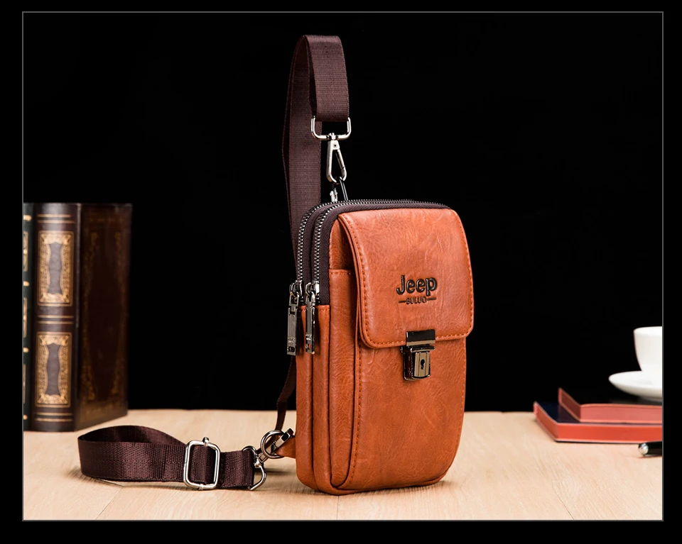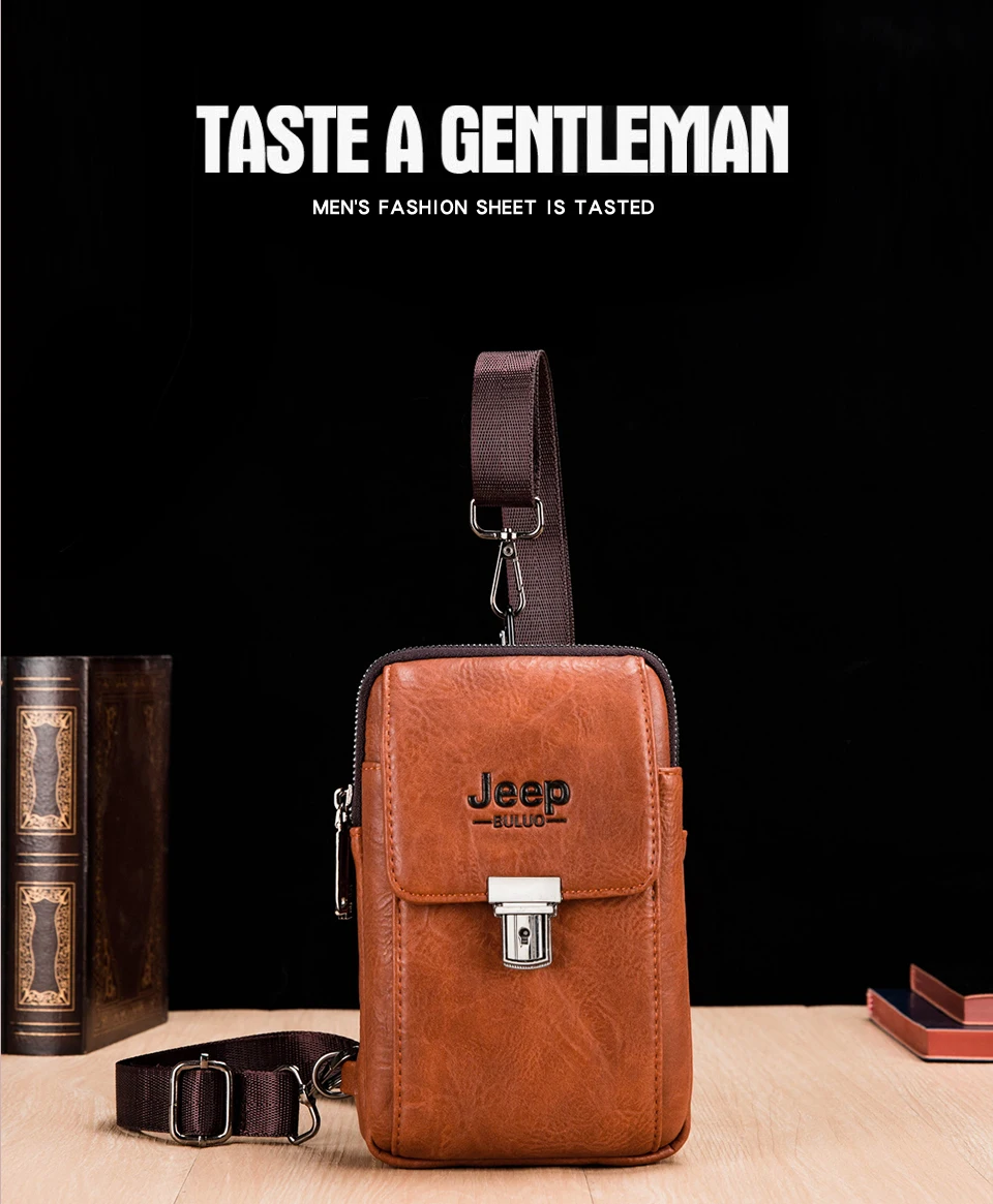 Мужская поясная сумка JEEP BULUO из спилка с ремнем на пояс, модная сумка для телефона, дорожная нагрудная сумка на плечо, Мужская маленькая Повседневная офисная сумка