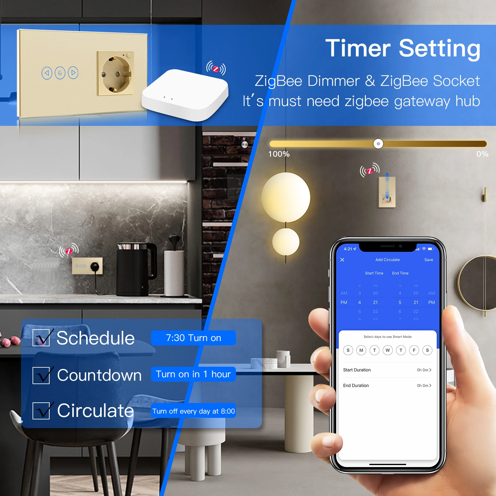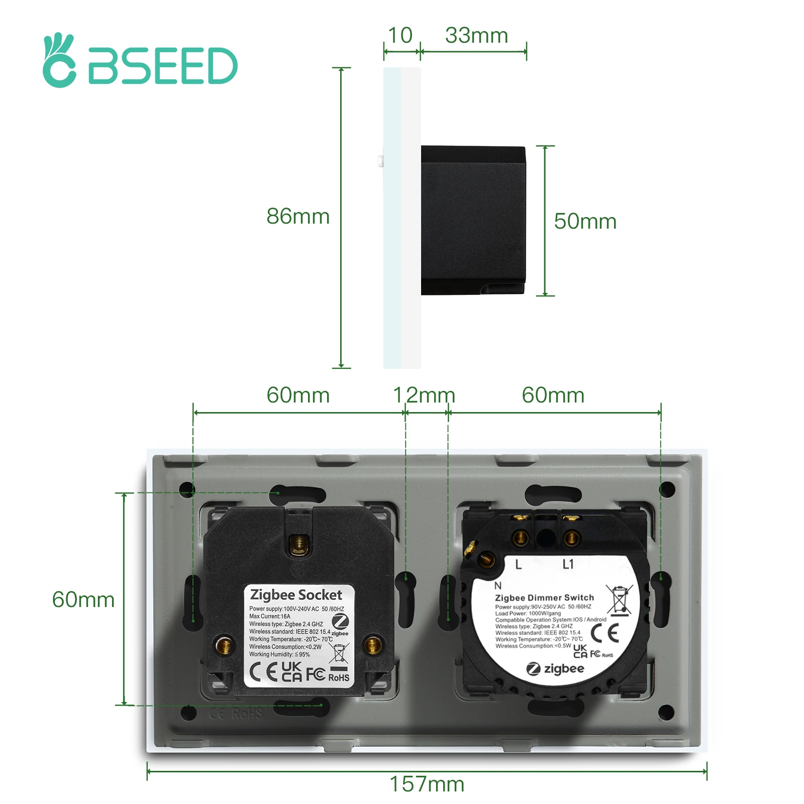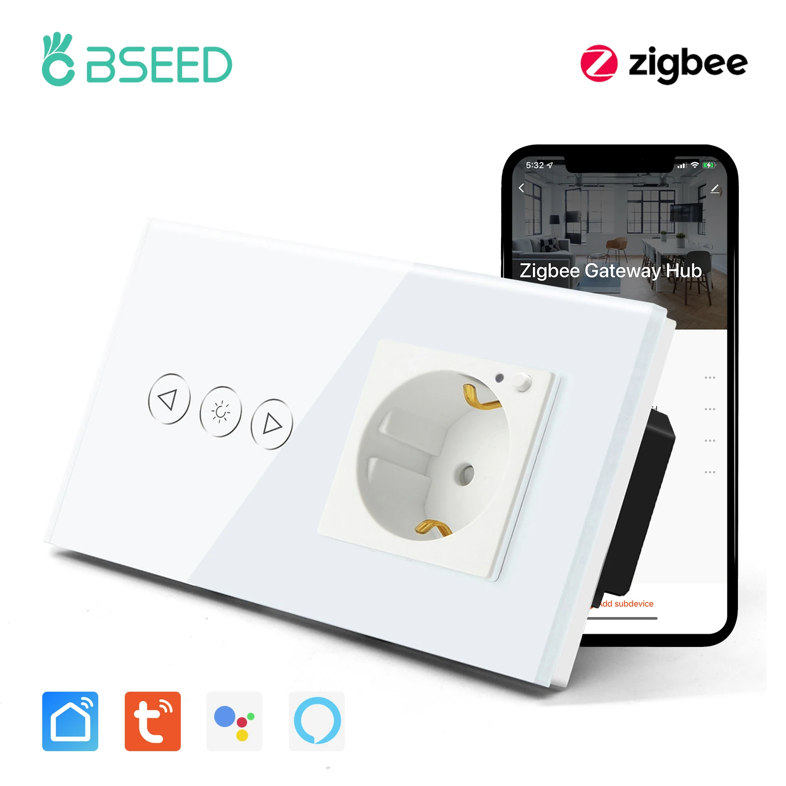 Переключатель BSEED ZigBee с регулировкой яркости, умная розетка ZigBee, 1 клавиша, настенный сенсорный выключатель, голосовое управление через приложение Google Alexa, светодиодный светильник с регулируемой яркостью