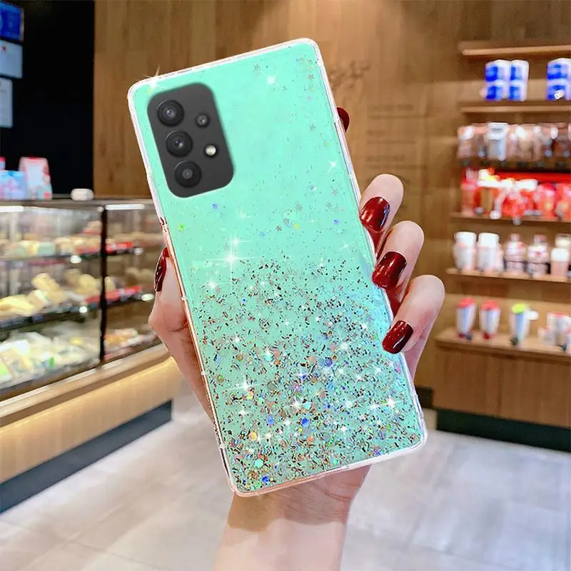 Высококачественное косметическое средство с блеском, чехол для телефона для Samsung Galaxy A32 4G A52 A72 A82 A42 A12 A22 5G F62 M62 Bling Star мягкие чехлы для задней панели