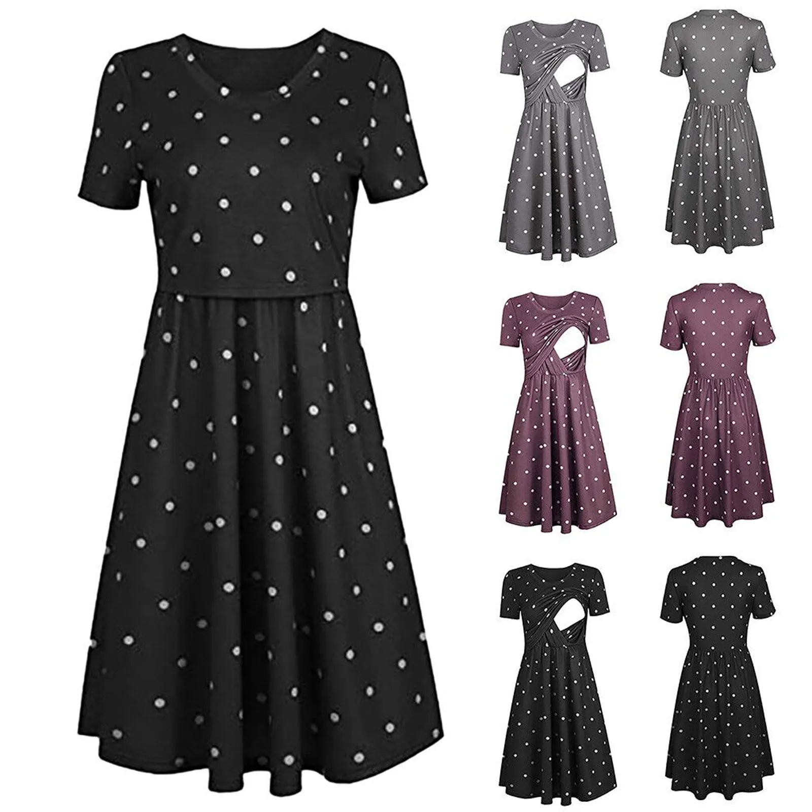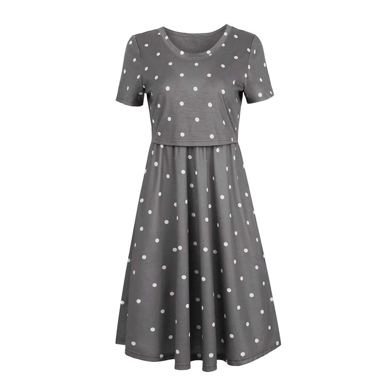 Повседневная одежда для беременных женщин с принтом в горошек с коротким рукавом для кормящих мам платье для кормящих матерей одежда для кормящих матерей