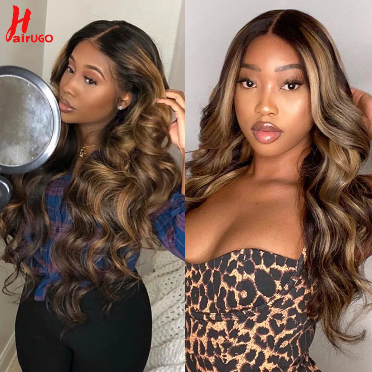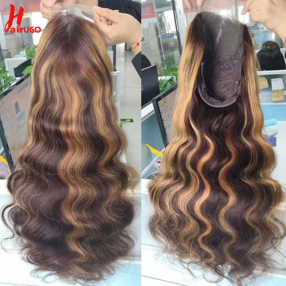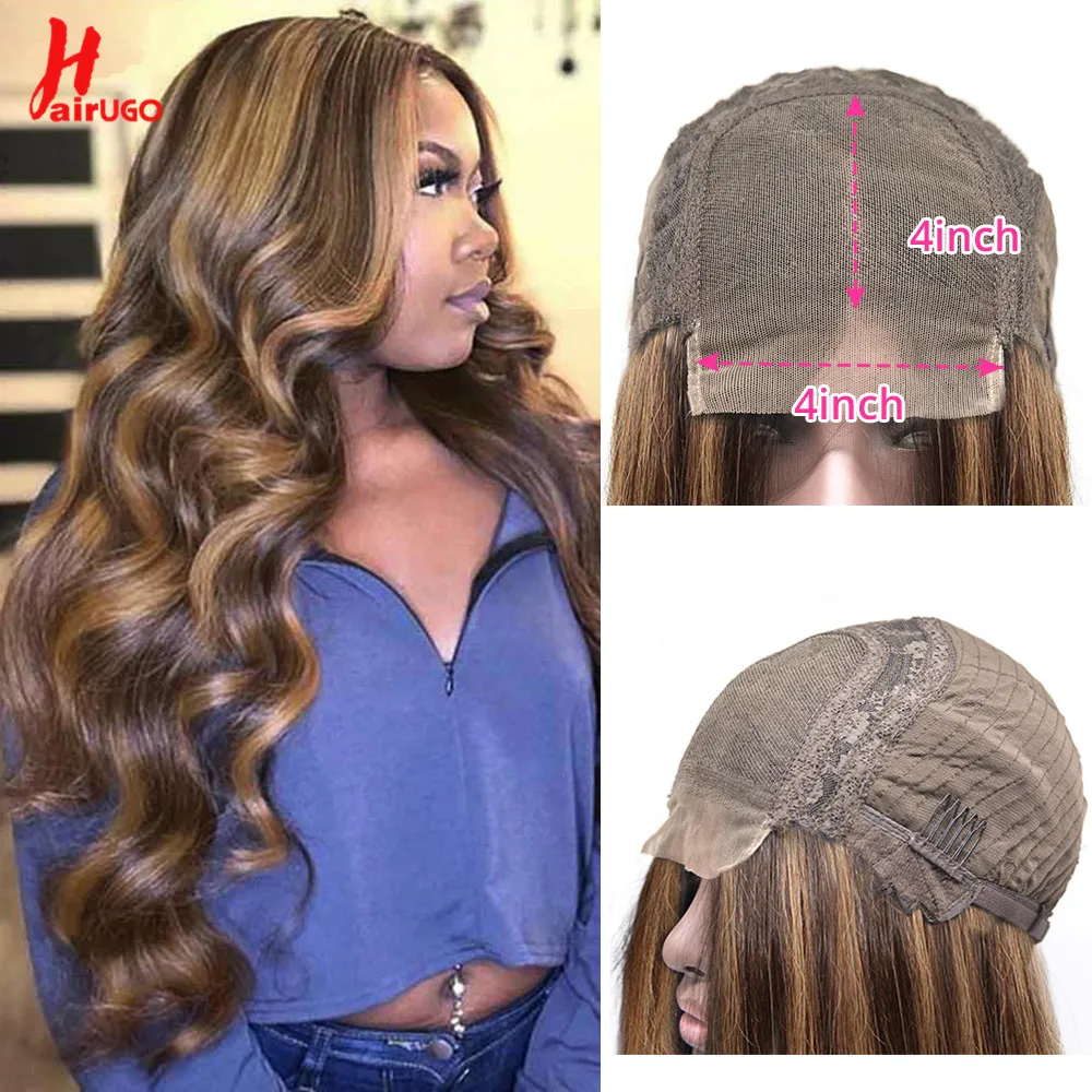 Хайлайтер HairUGo P427, волнистые человеческие волосы 4x4 с кружевной застежкой, искусственные бразильские волосы 10-28 дюймов, парик с кружевной пряжкой 150%