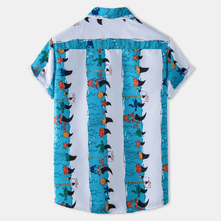Гавайская рубашка в полоску с принтом морской звезды, Мужская Летня...