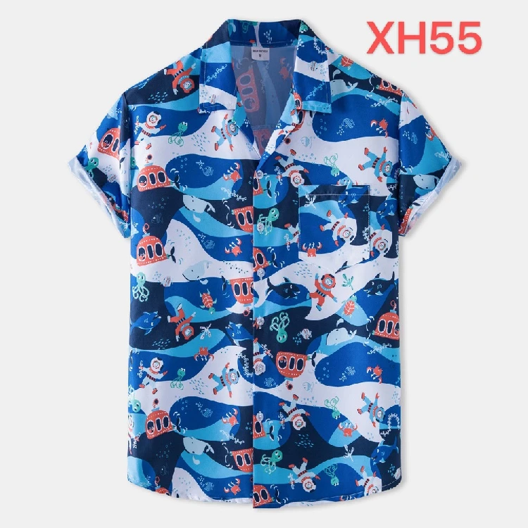 Гавайская рубашка мужская с короткими рукавами, Синяя пляжная одежд...