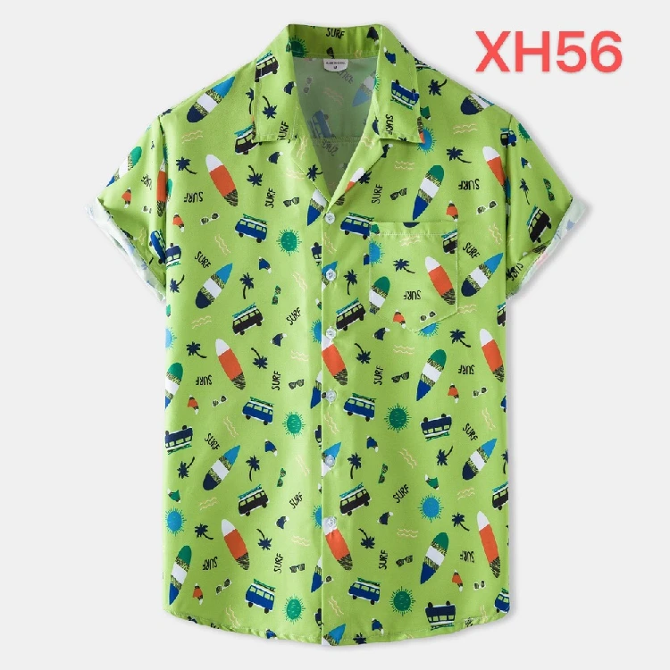 Зеленая Гавайская пляжная рубашка для мужчин, лето 2021, модная руб...