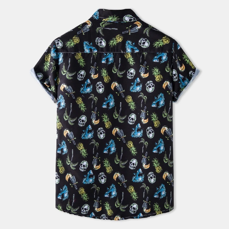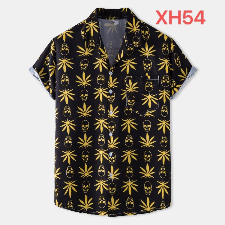 Гавайская пляжная рубашка для мужчин, уличная одежда для отдыха, модная желтая рубашка с принтом черепа, на пуговицах, в стиле Харадзюку, на лето