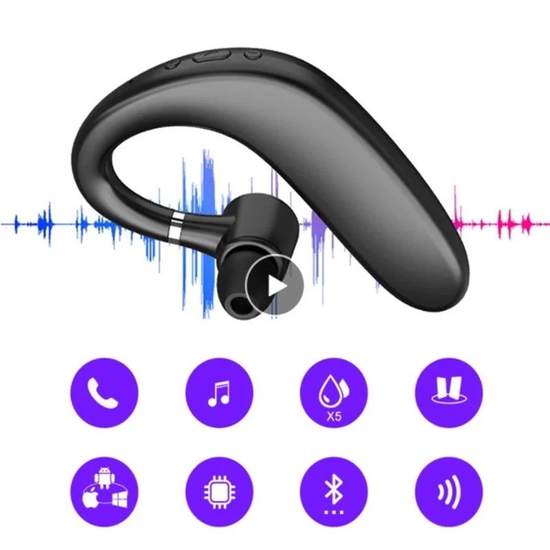 Bluetooth-совместимые стерео наушники-вкладыши с шумоподавлением, односторонний подвесной наушник, спортивный бизнес-микрофон, беспроводная гарнитура для вождения