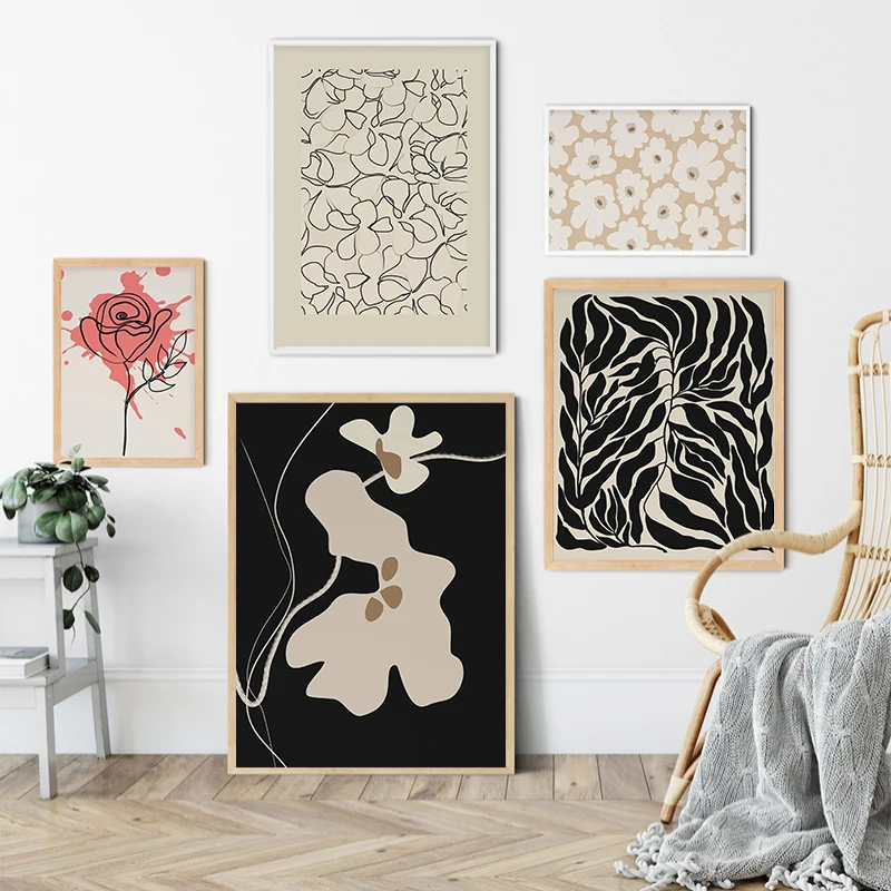 Абстрактная живопись с изображениями цветов и растений Плакаты и листьев принты галерея Wall Art Скандинавская Картина на холсте картинки для Гостиная домашний декор