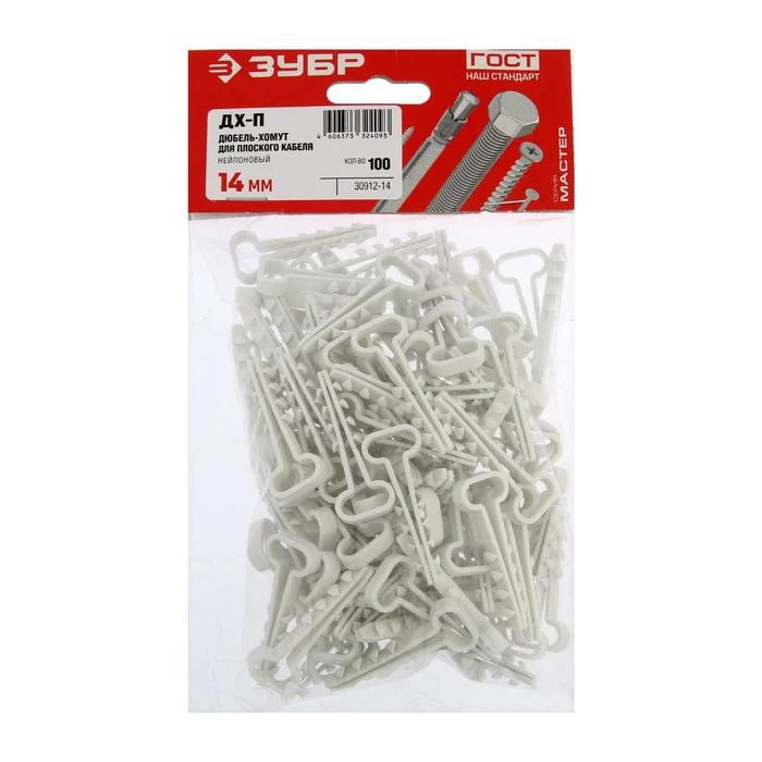 Дюбель-хомут "ЗУБР" для плоского кабеля ДХ-П, 14 мм, нейлон, 100 шт. 5438630