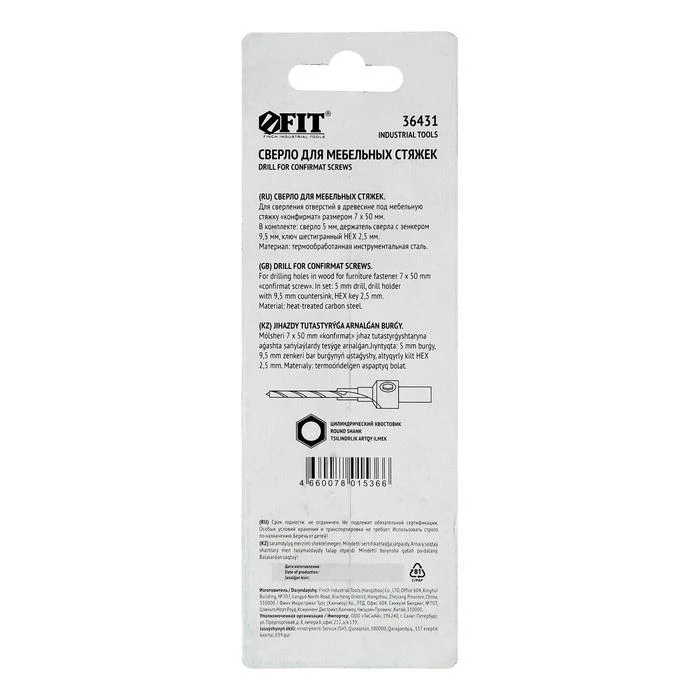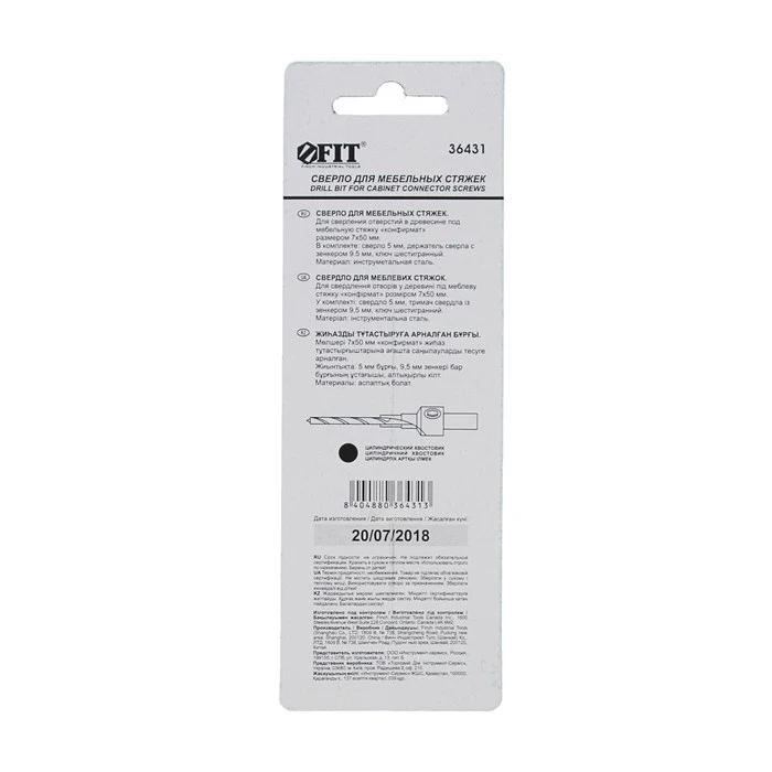 Сверло под конфирмат FIT 36431, для мебельных стяжек, 5 ммзенкер 9....