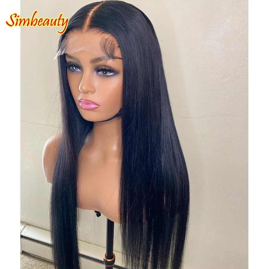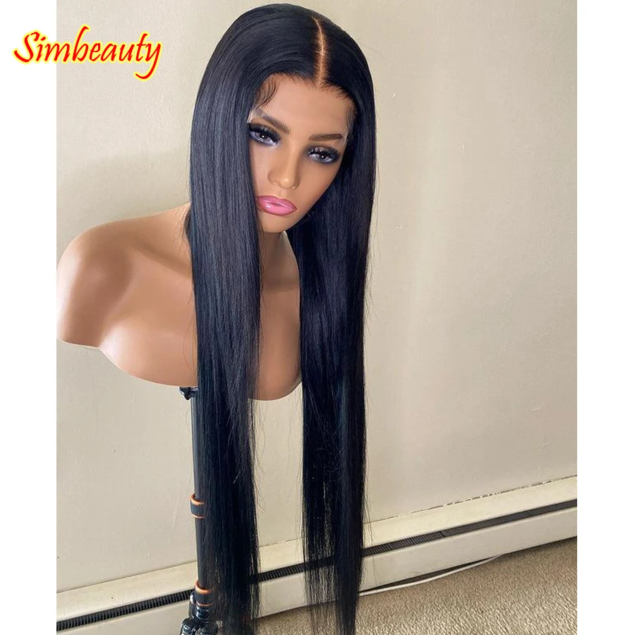Бразильский Jet черные шелковистые прямые 100% человеческих волос парики с натуральных волос 200 Плотность 13x6 глубокий часть Синтетические волосы на кружеве парики