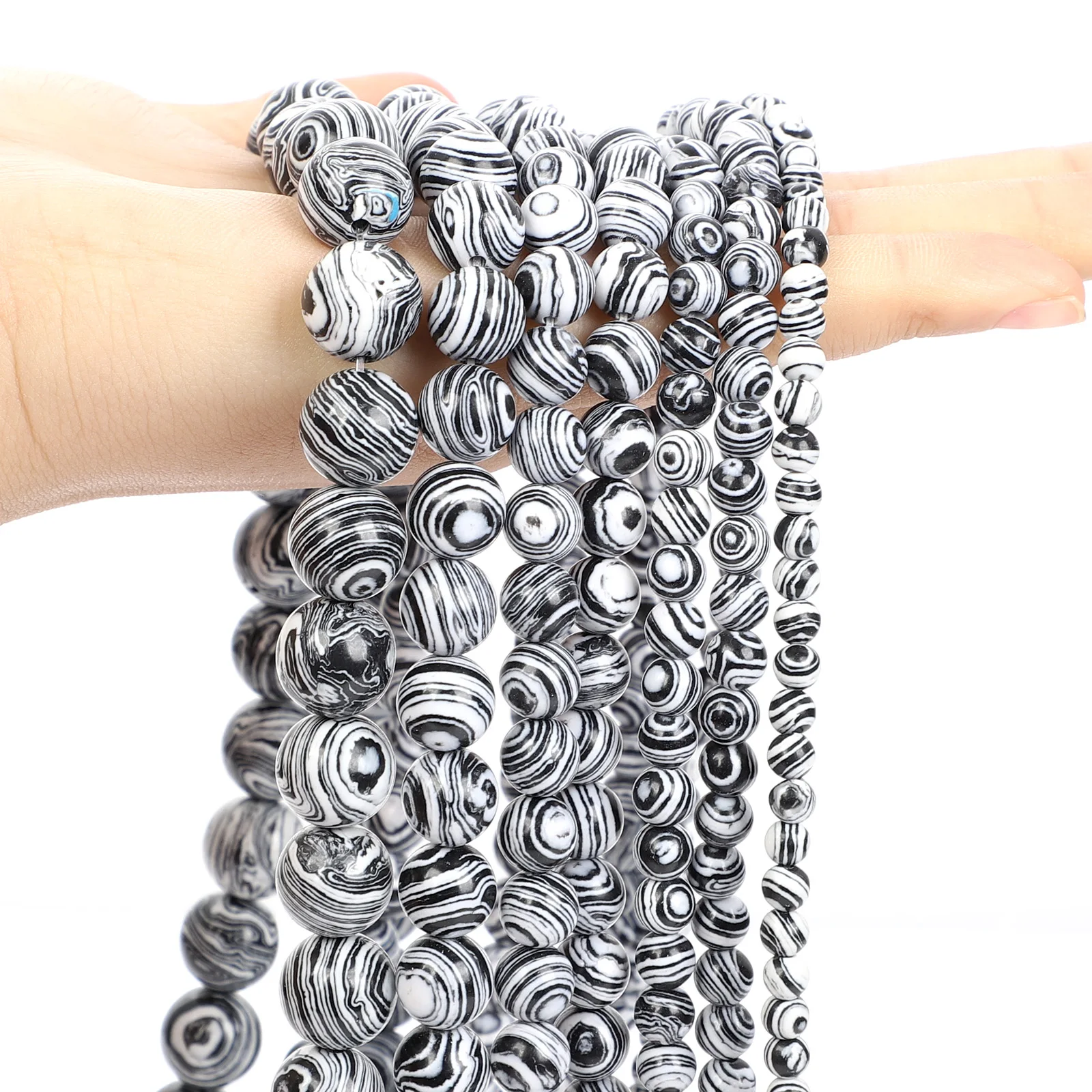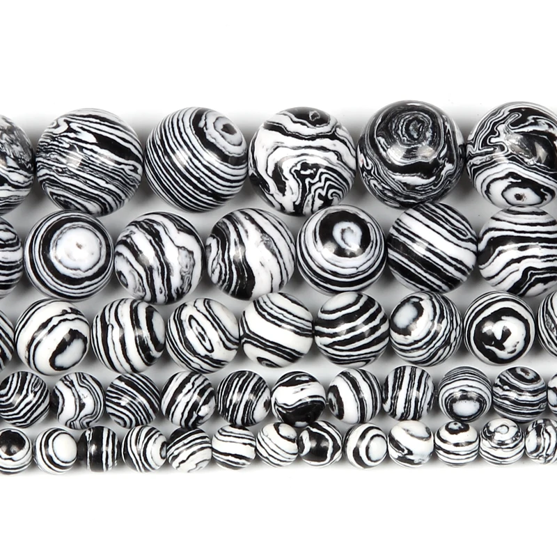 Тип товара: гладкие черно-белые бусины из Малахита и натурального камня