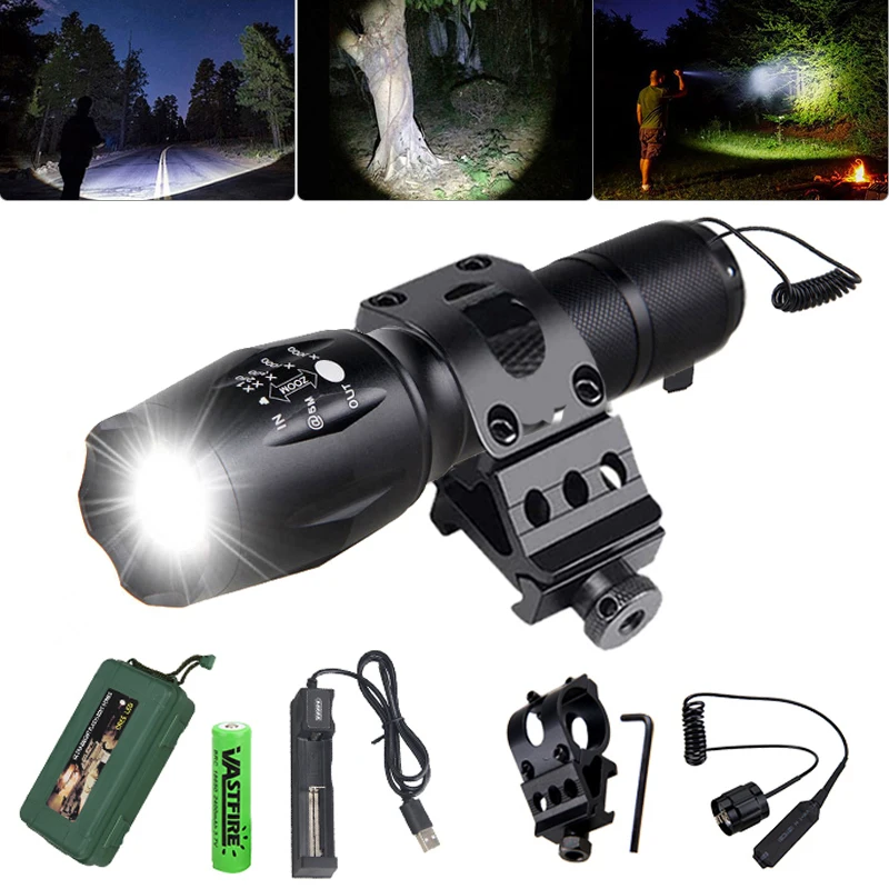A100 тактический фонарь для охоты 5000 люмен Q5T6 белыйзеленыйкрасный светодиодный Фонари фонарь + винтовое крепление зажим + переключатель + 18650 + Зарядное устройство + коробка
