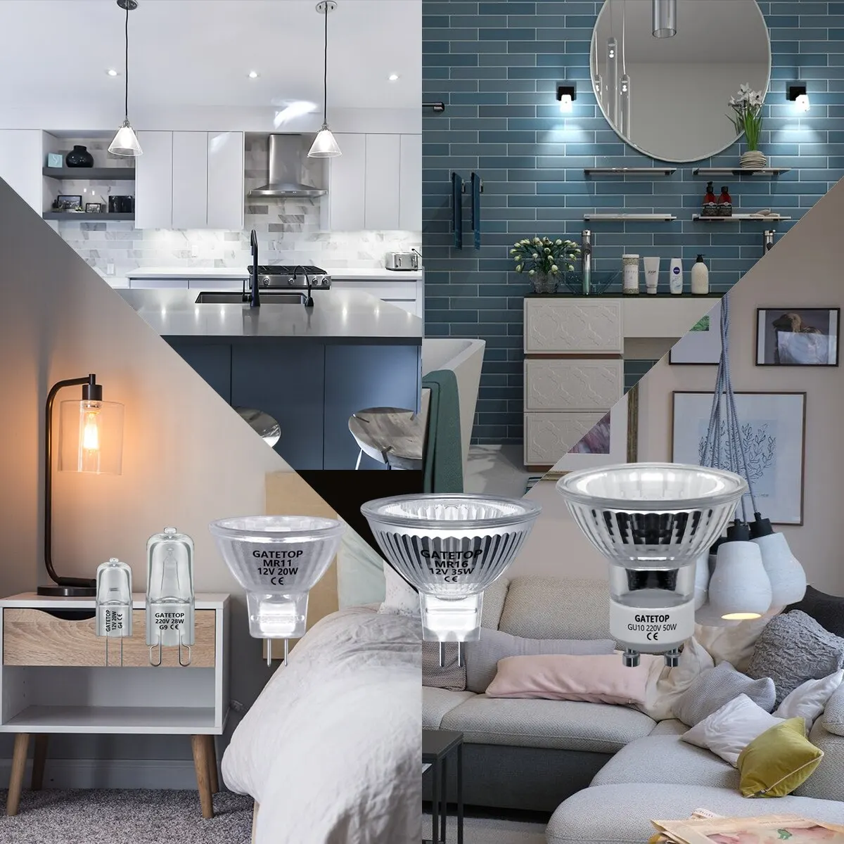Точечная галогенная лампа G4 G9 Mr11 Mr16 Gu10 20 Вт 30 Вт 35 Вт 50 Вт 12 В 220 В, энергосберегающая Gu5.3, популярный размер