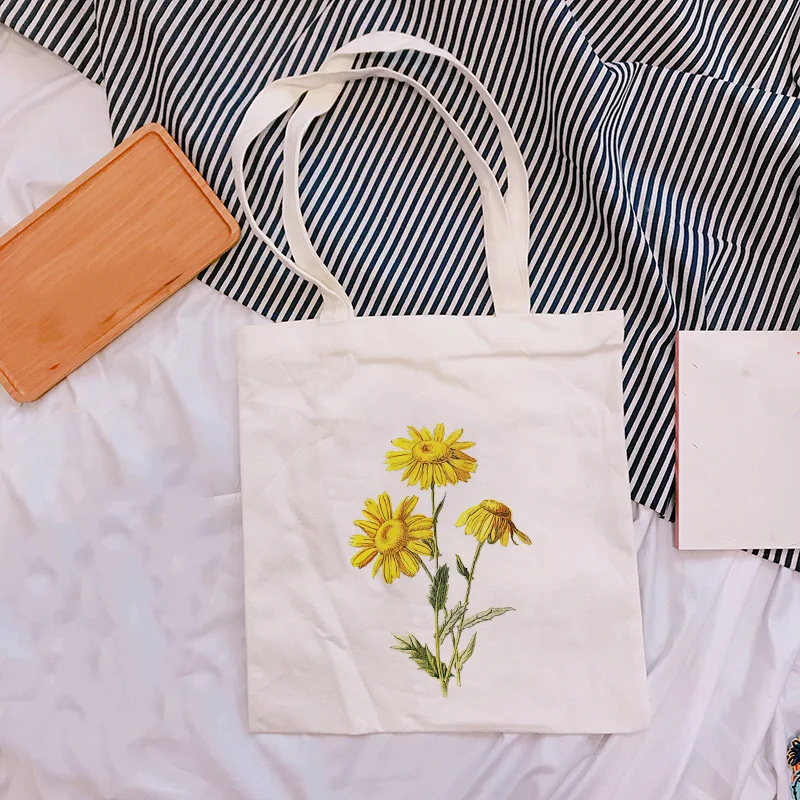 Летняя одежда с цветочным рисунком дикое растение Холщовая Сумка на плечо, сумка-тоут для женщин сумки эко многоразовые сумки для покупок в винтажном стиле, модные кепки, кепки в стиле сумки