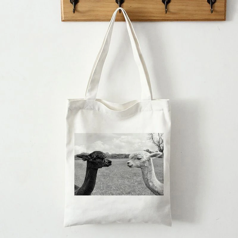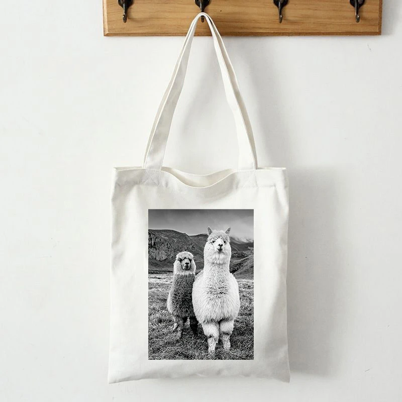 Сумка для покупок, милая альпака, новинка 2021, сумки на плечо, холщовая эко-сумка, вместительная Милая винтажная мультяшная сумка для покупок в стиле Харадзюку